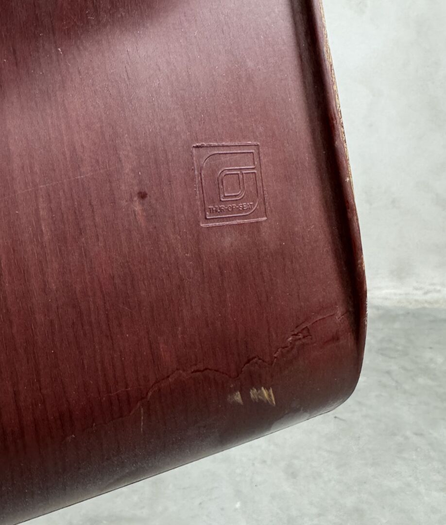 33 ESTIMATION: 30 / 50 € PAGHOLZ PAGWOOD – édition Thur-Op-Seat Chaise d’enfant de style industriel en bois thermoformé, le piètement métal en étoile laqué crème Marque au revers, numérotée 800536 H : 67 cm