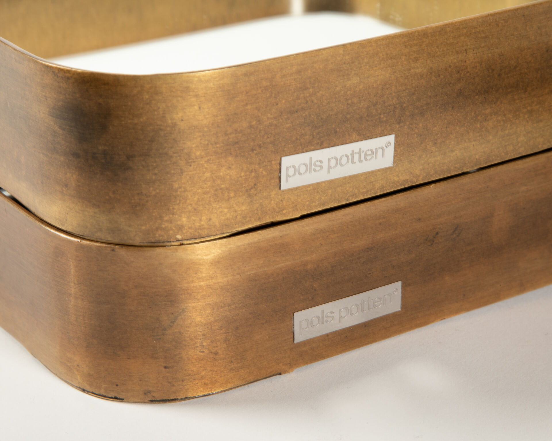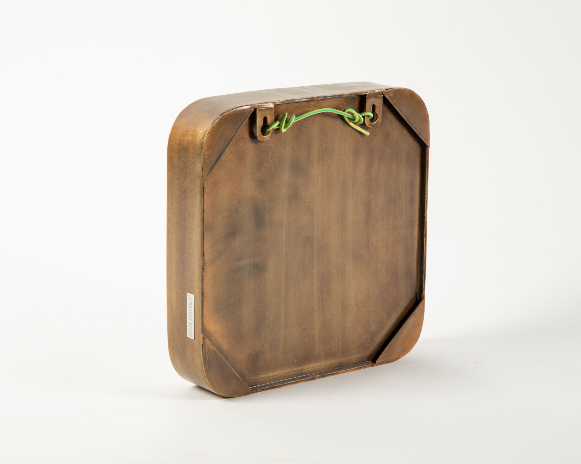 36 ESTIMATION: 55 / 120 € POLS POTTEN Suite de trois miroirs carré à bords amoindris à encadrement en acier à patine dorée Coté : 26 cm