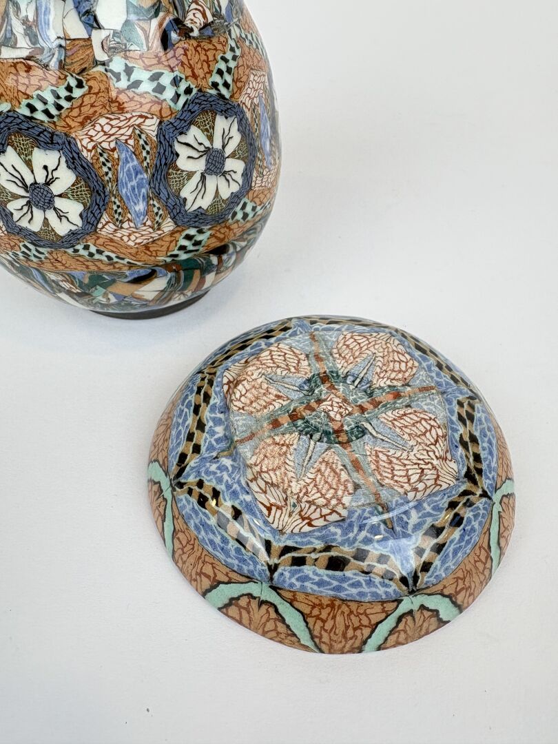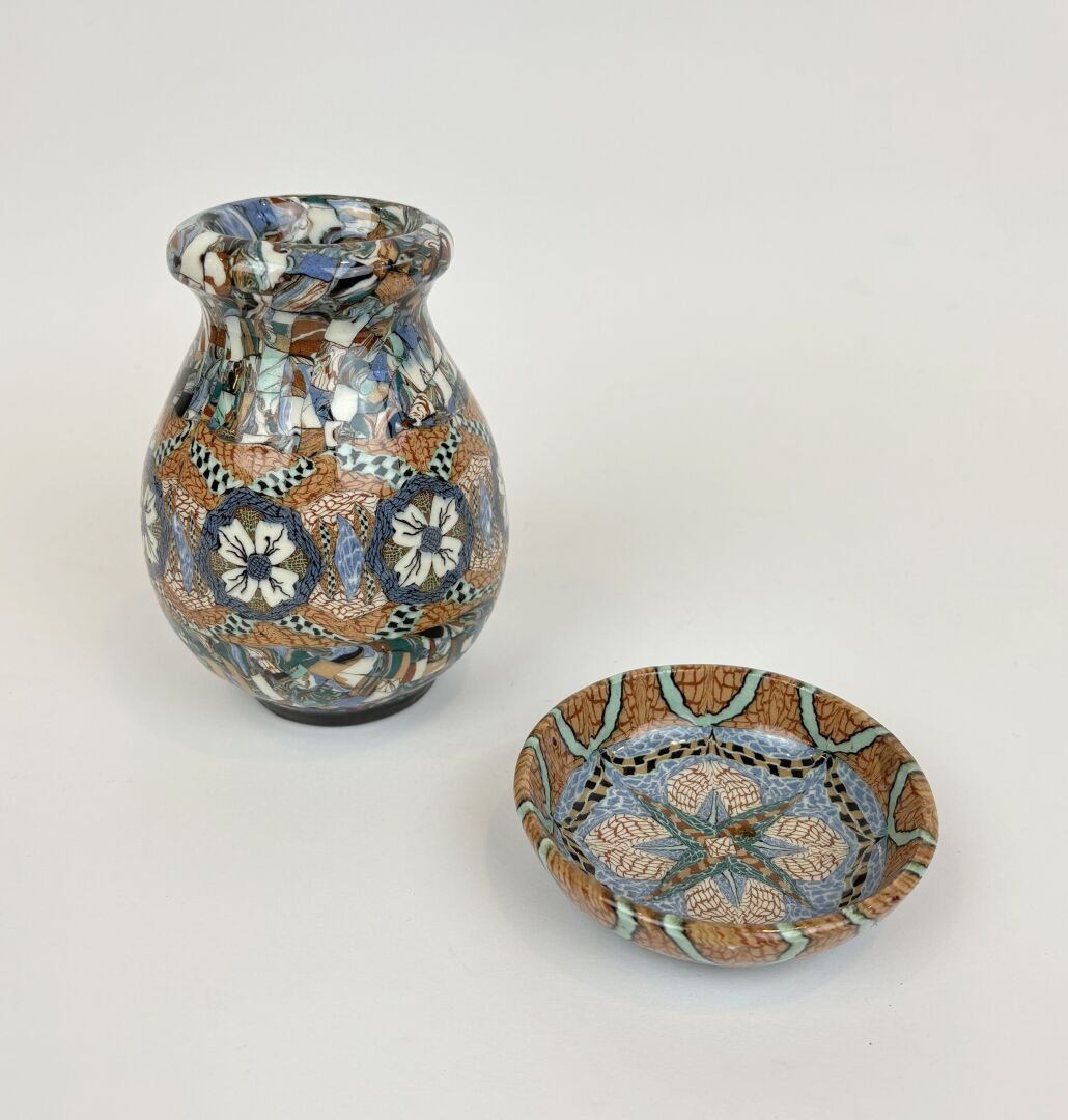 4 ESTIMATION: 30 / 50 € GERBILO à Vallauris Ensemble en terre mêlée comprenant un petit vase et une coupelle Marque en creux H : 13 – D : 9.5 cm