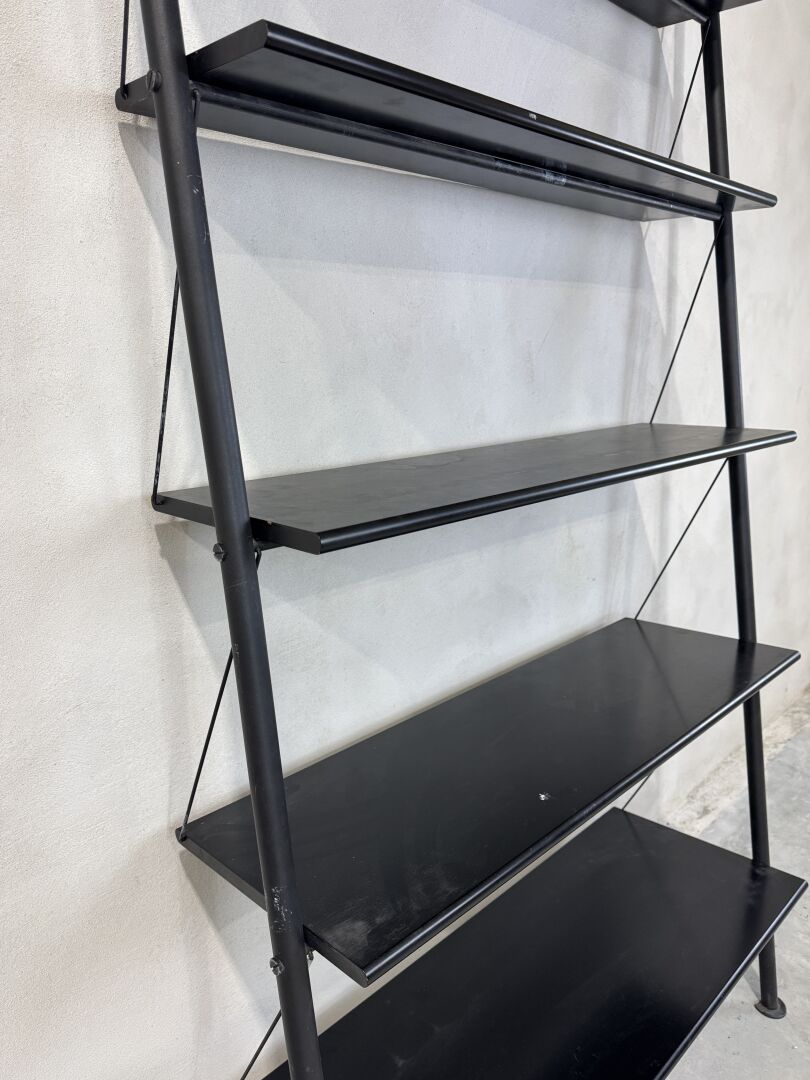 Étagère modèle John Idl – 1977 composée de cinq tablettes, les montants en métal laqué noir