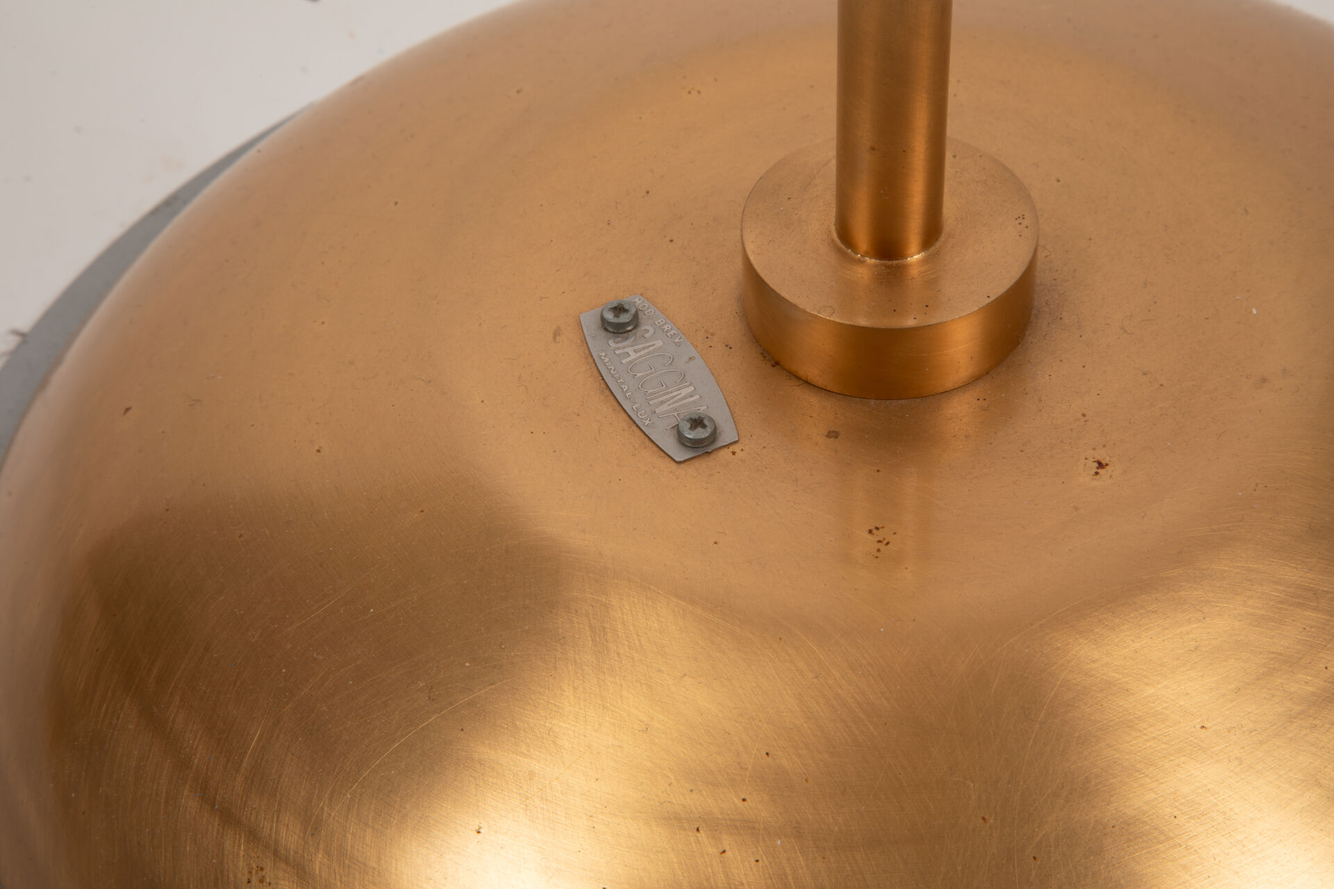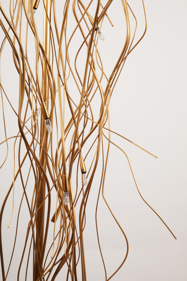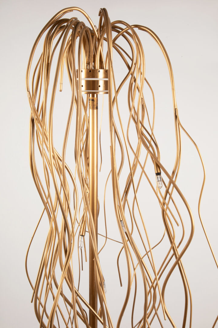 54 ESTIMATION: 200 / 300 € MINITAL-LUX Éditeur Lampadaire modèle Saggina 12.ST dit « Spaghetti » en métal doré reposant sur une base demi globe H : 186 cm