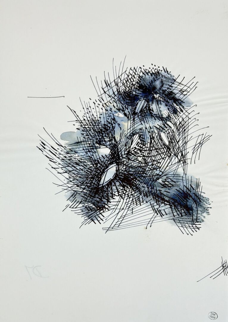 Feutre sur papier, tampon de la vente de l’atelier en bas à droite et monogramme au dos