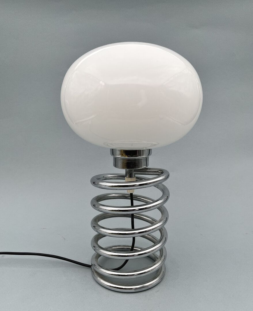 3 RÉSULTAT: 500 € ESTIMATION: 150 / 200 € INGO MAURER (1932-2019) Lampe à poser modèle Spring en acier chromé et opaline blanche H : 31 cm