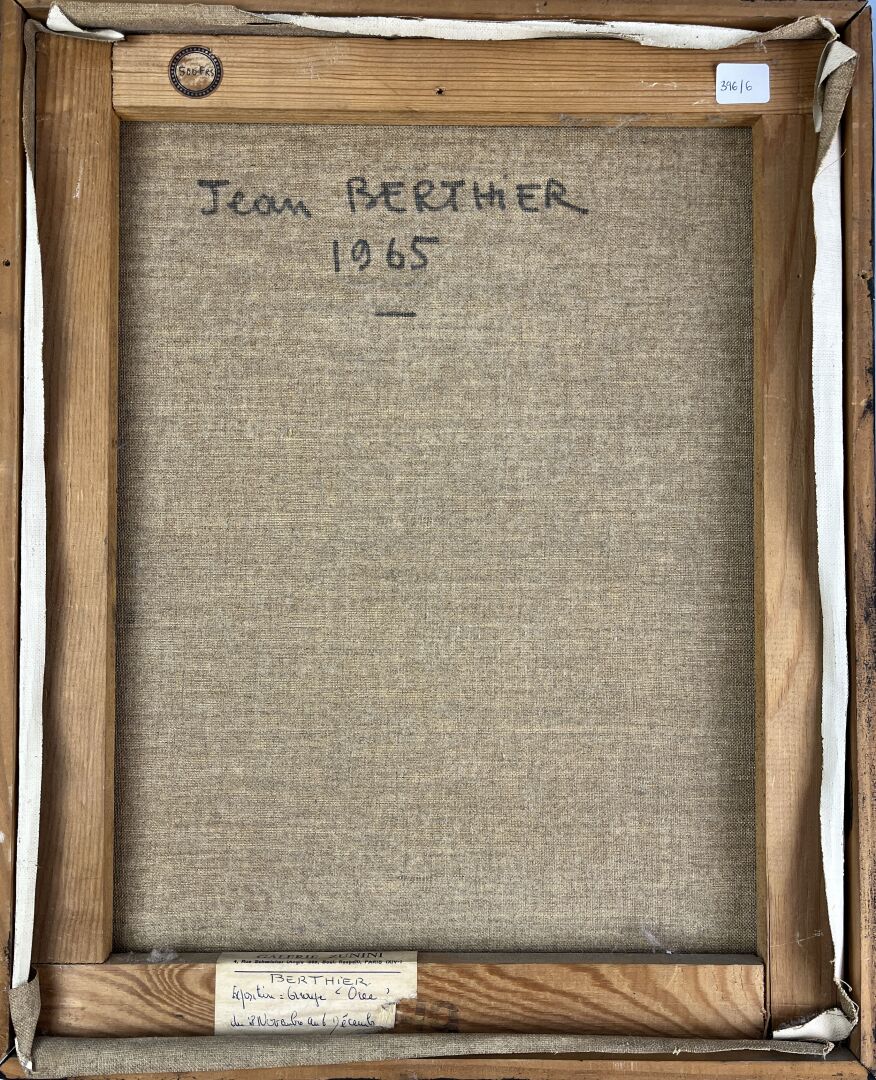 50 RÉSULTAT: 80 € ESTIMATION: 80 / 120 € Jean BERTHIER (1923-2004) « Orée » Huile sur toile signée en bas à droite, contresignée et datée 1965 au dos 41 x 33 cm