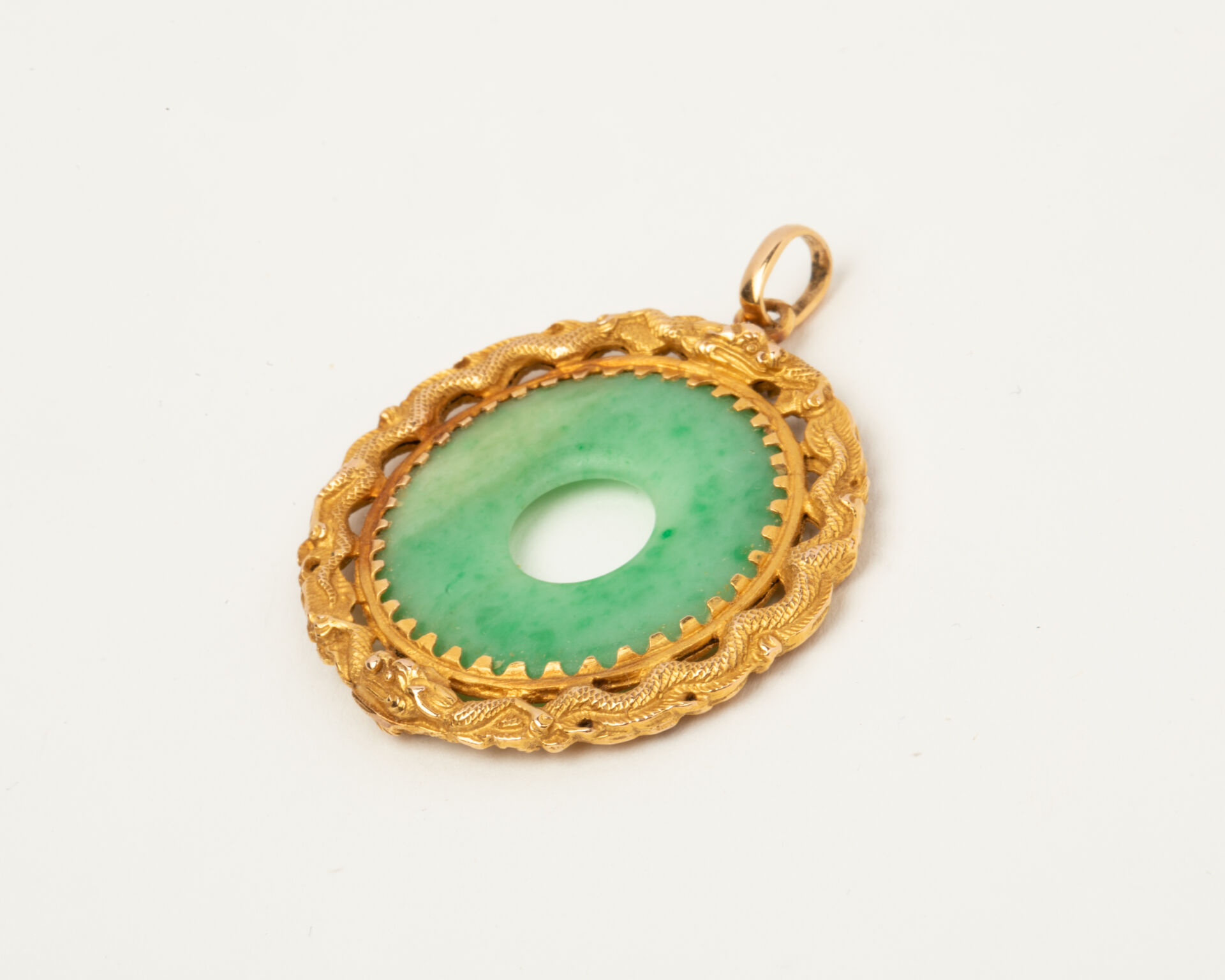 31 ESTIMATION: 150 / 250 € Pendentif en or jaune (750 millièmes) à décor ajouré de dragon à la poursuite de la perle sacrée, sertissant un disque percé de jadéite Diam : 37 mm Poids Brut : 9.11 g. LAISSER UN ORDRE ORDRE D'ACHAT Civilité MmeMlleMr Carte d'identité * Le fichier doit être au format .pdf, .jpeg, .jpg ou .png et ne doit pas dépasser les 5 Mo. Relevé d'identité bancaire * Le fichier doit être au format .pdf, .jpeg, .jpg ou .png et ne doit pas dépasser les 5 Mo. Je souhaite être informé des actualités et des prochaines ventes de SuducaJe reconnais avoir lu, compris et accepté la politique de confidentialité de Suduca