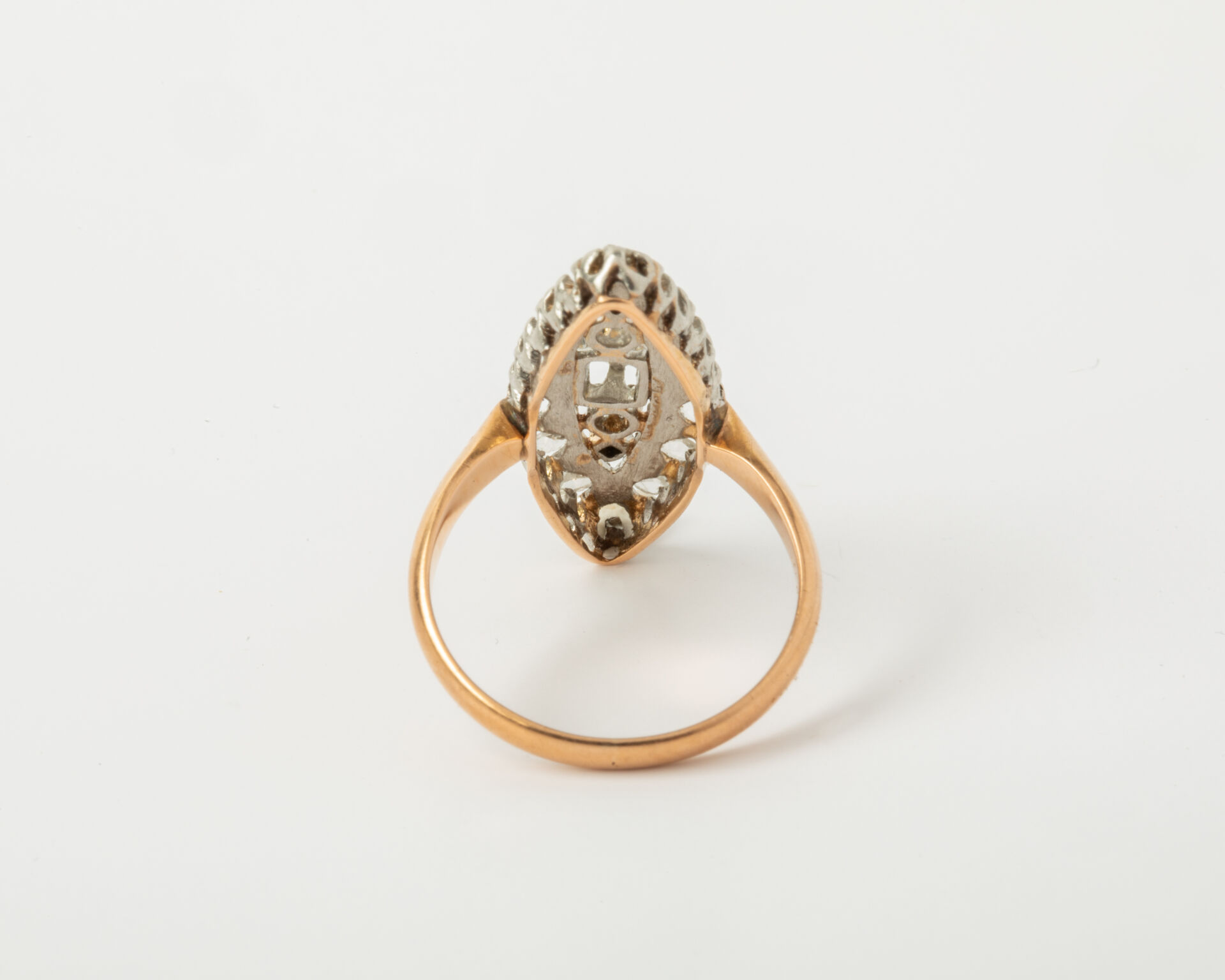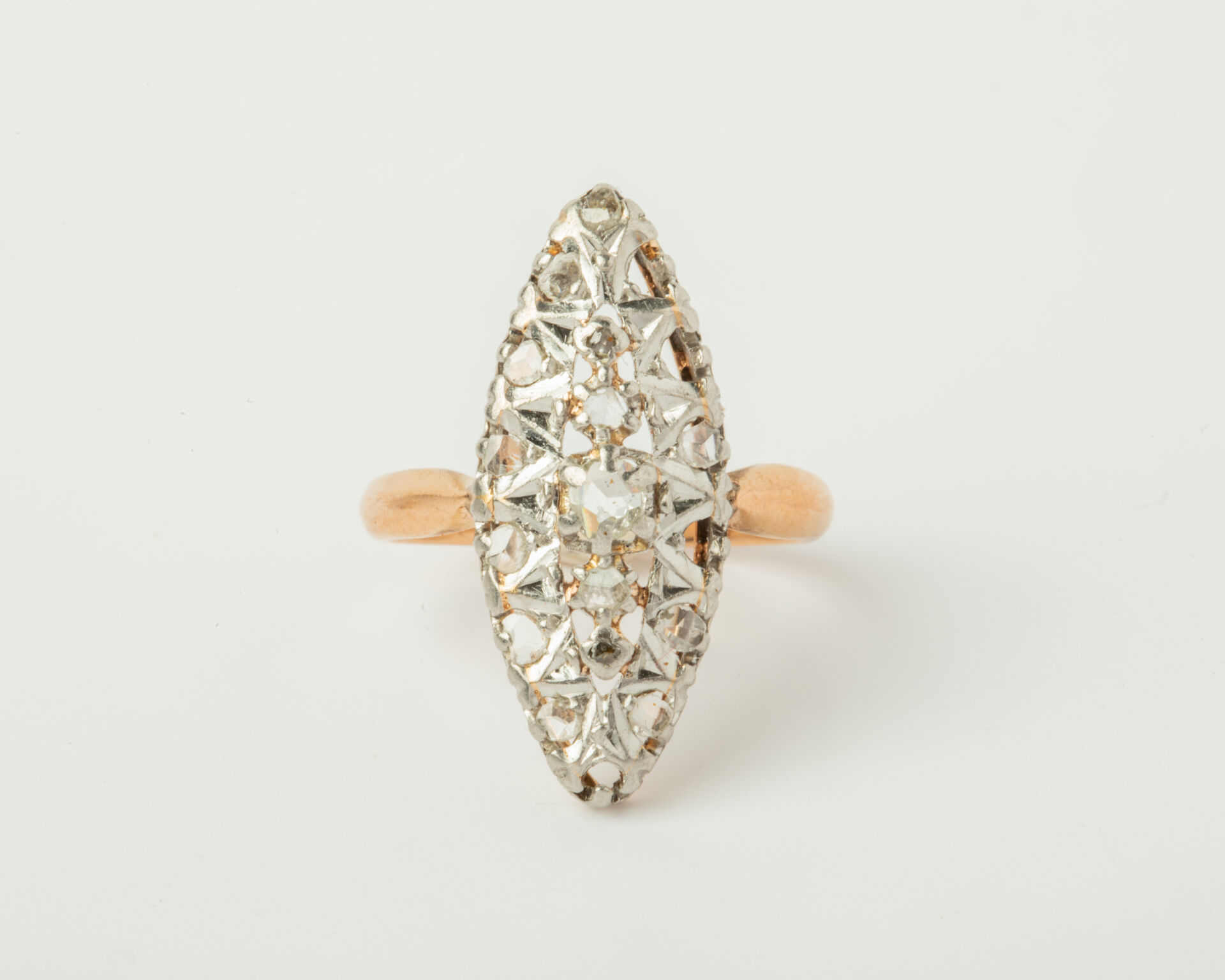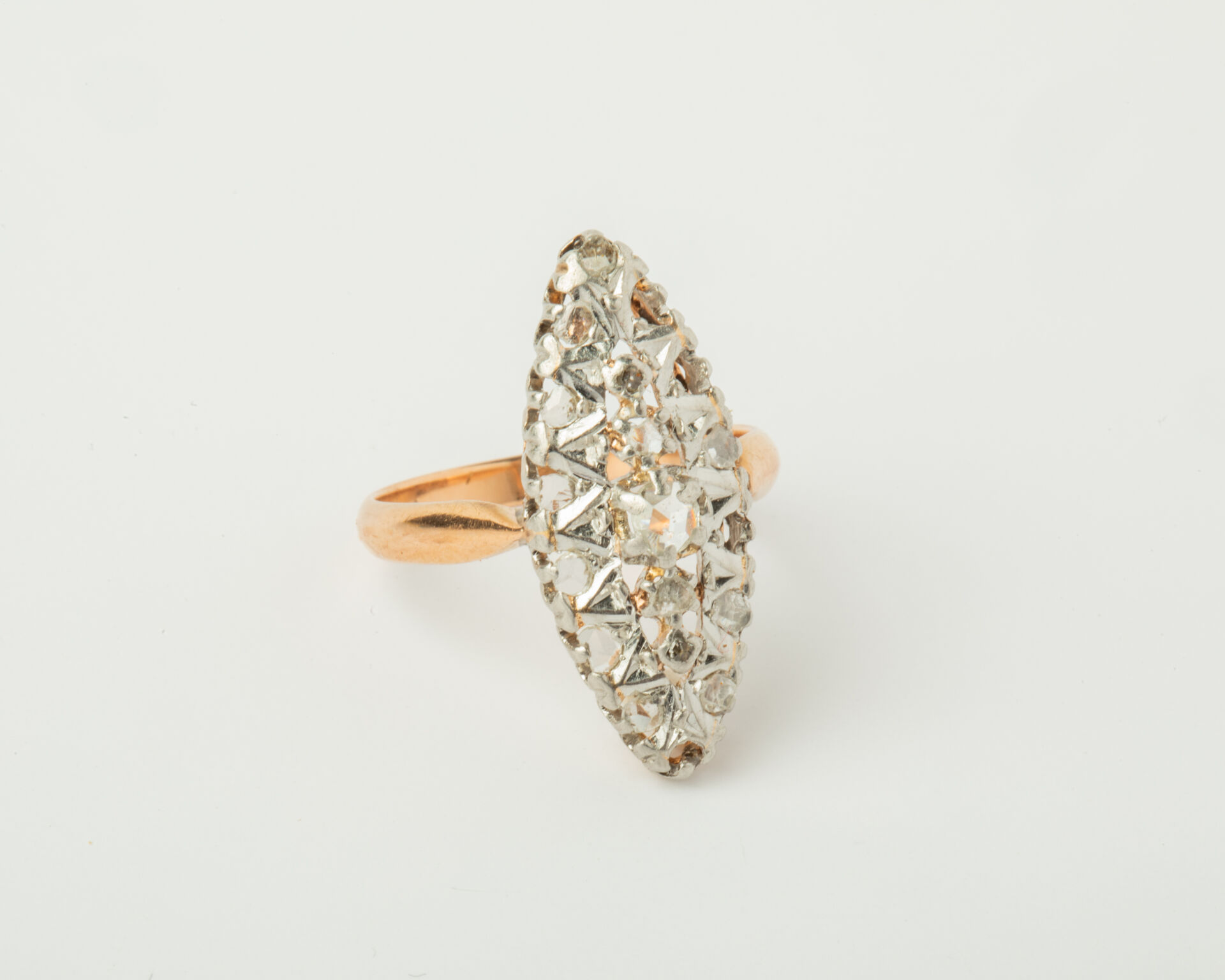 38 ESTIMATION: 350 / 450 € Bague marquise en or jaune (750 millièmes) et platine pavée de diamants taille rose (manques). TDD : 53 Poids Brut : 4.5 g LAISSER UN ORDRE ORDRE D'ACHAT Civilité MmeMlleMr Carte d'identité * Le fichier doit être au format .pdf, .jpeg, .jpg ou .png et ne doit pas dépasser les 5 Mo. Relevé d'identité bancaire * Le fichier doit être au format .pdf, .jpeg, .jpg ou .png et ne doit pas dépasser les 5 Mo. Je souhaite être informé des actualités et des prochaines ventes de SuducaJe reconnais avoir lu, compris et accepté la politique de confidentialité de Suduca