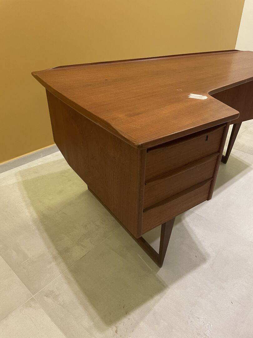 152 RÉSULTAT: 2200 € ESTIMATION: 800 / 1200 € Peter Løvig Nielsen (1925-?) Bureau en teck, modèle Boomerang (1956) édité par Hedensted Møbelfabrik