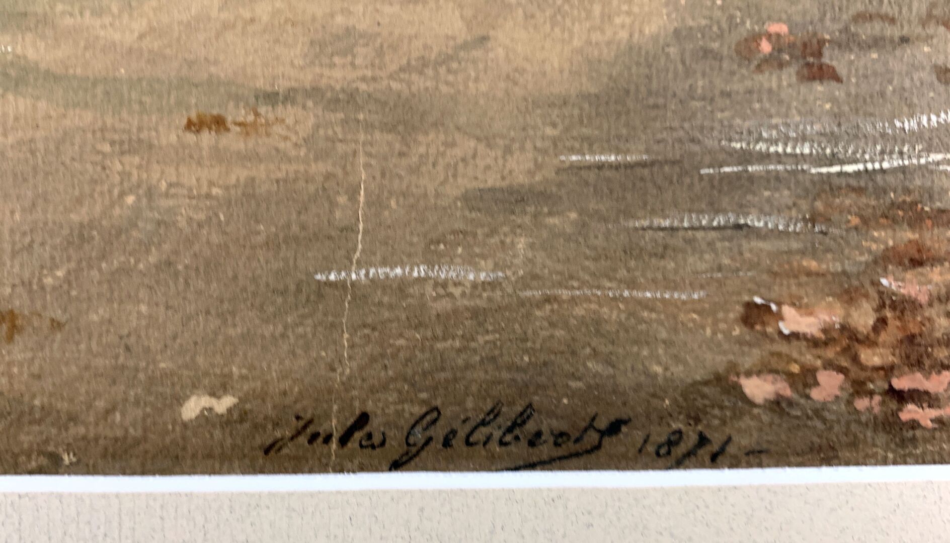 211 RÉSULTAT: 200 € ESTIMATION: 200 / 300 € Jules Bertrand GELIBERT (1834-1916) Scène de chasse en forêt Aquarelle sur papier signée en bas à droite et datée 1881 29 x 45 cm Restaurations