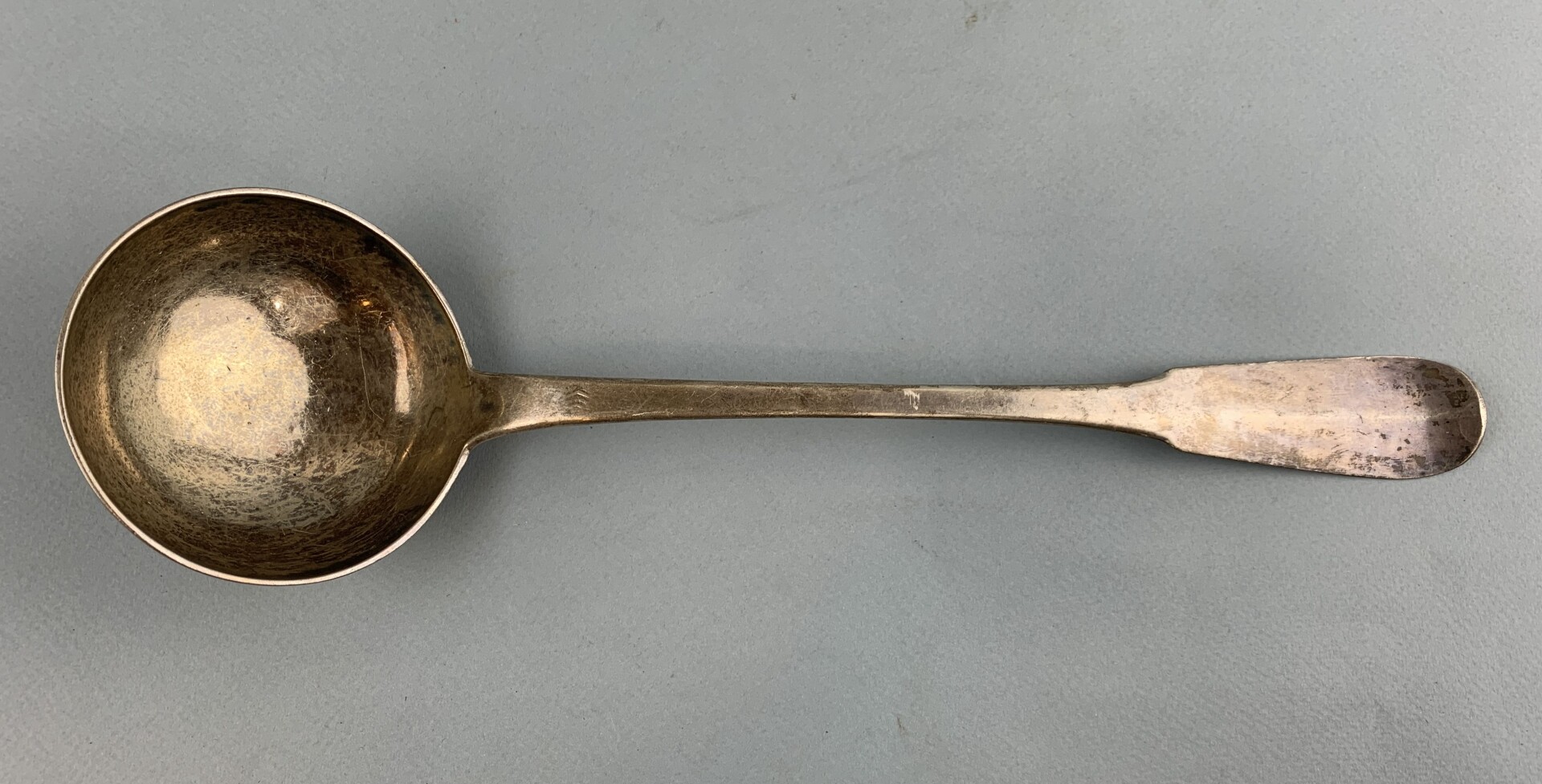 126 RÉSULTAT: 95 € ESTIMATION: 50 / 80 € Louche en argent modèle baguette poinçon minerve Maître orfèvre : Laurent Labbé Poids : 191 g