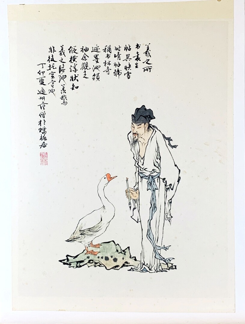 165 RÉSULTAT: 110 € ESTIMATION: 50 / 80 € Ecole chinoise XX°, dans le goût de Fan XHENG Lettré à l’oie Encre et aquarelle sur papier, collé sur carton 47 x 34 cm.