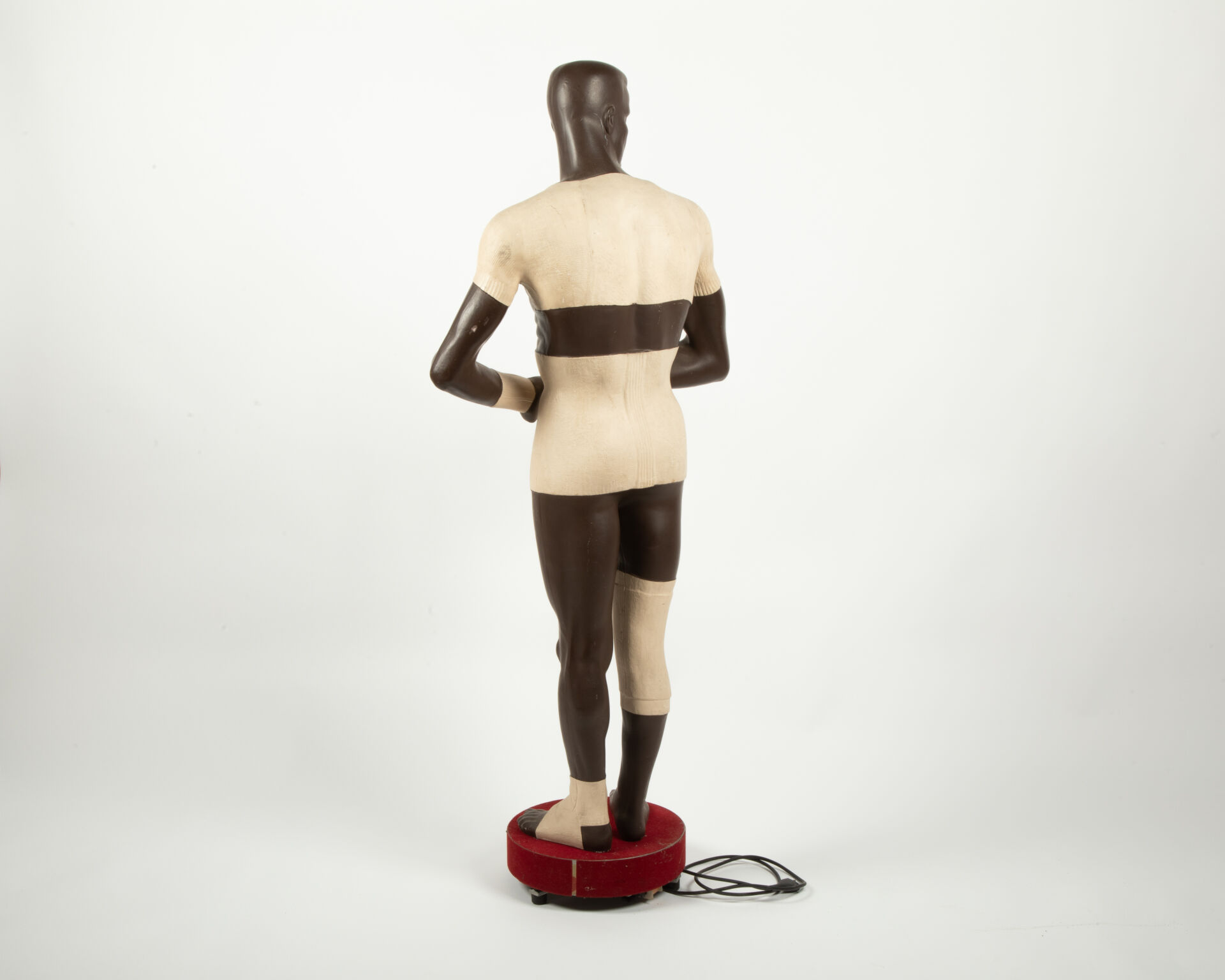 On y joint un socle de présentation rotatif couvert de feutre rouge.