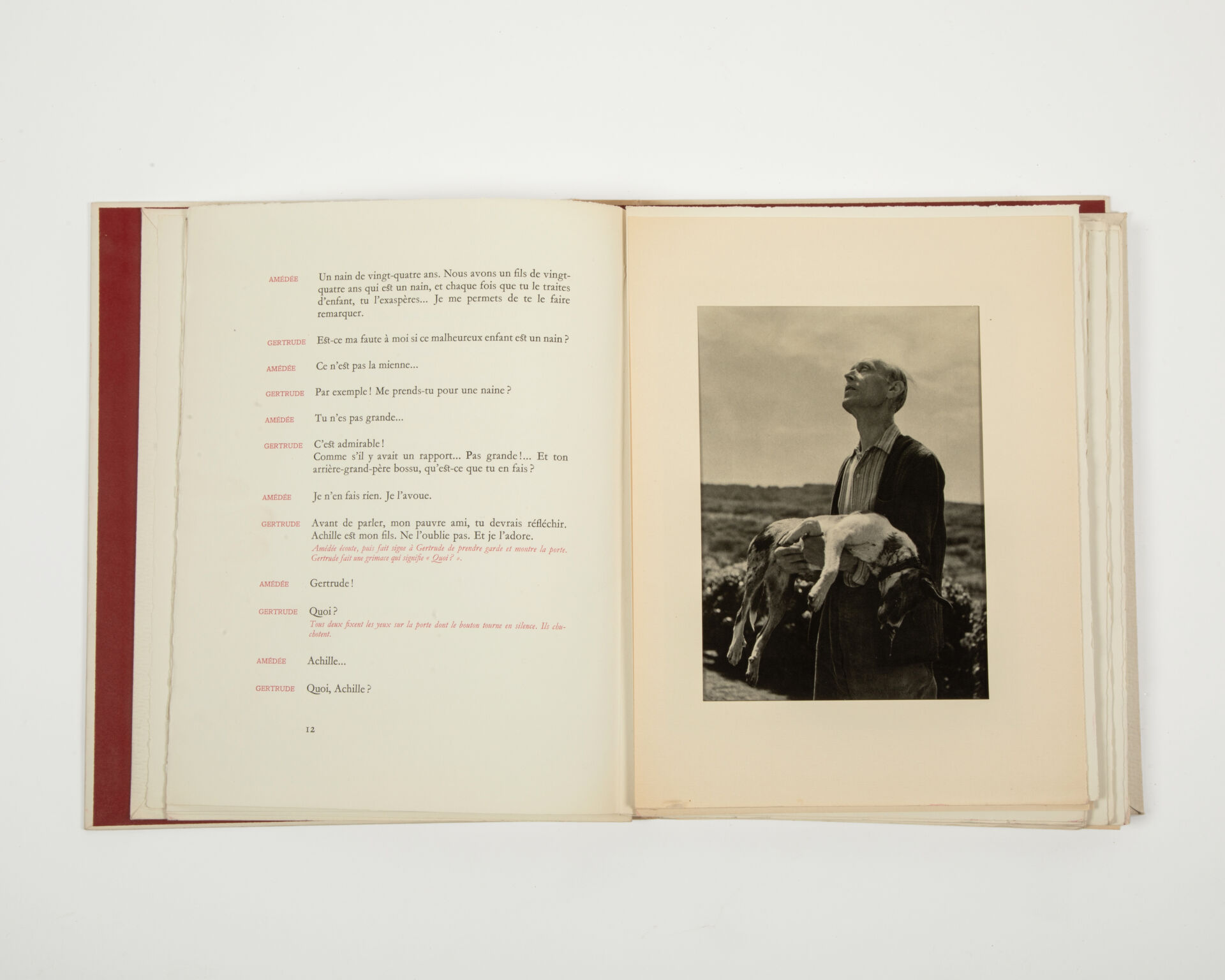 In-4, en feuilles, couverture imprimée rempliée, chemise, étui, 21 photographies hors texte tirées du film, typographie en deux couleurs. Emboitage et couverture abimés