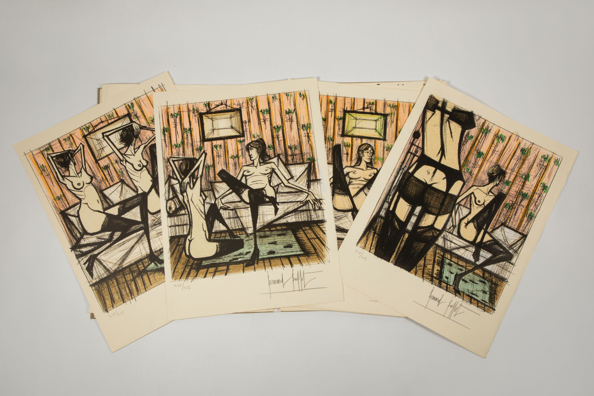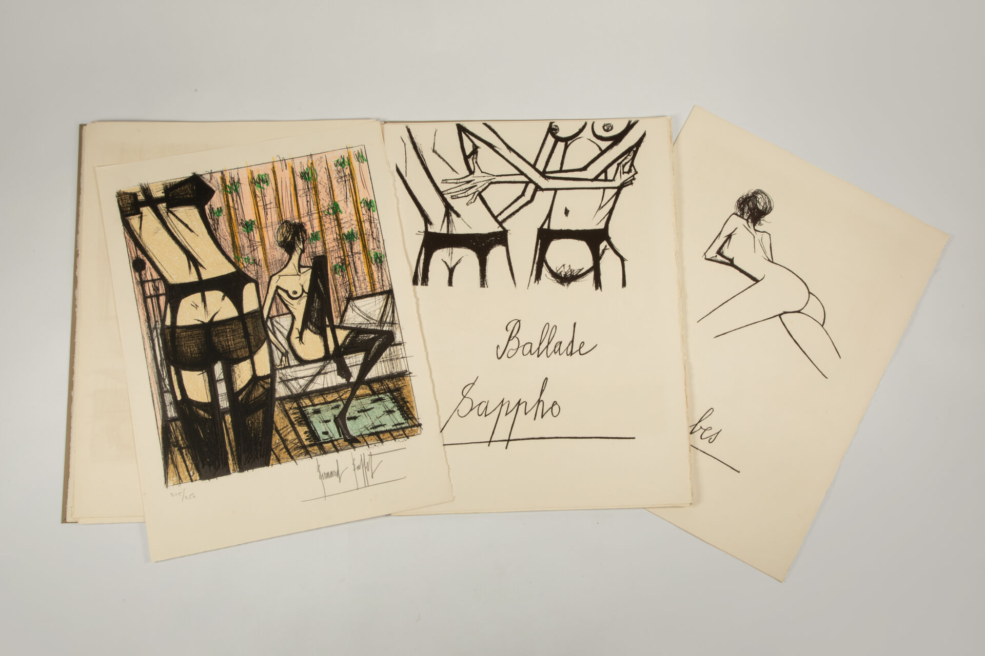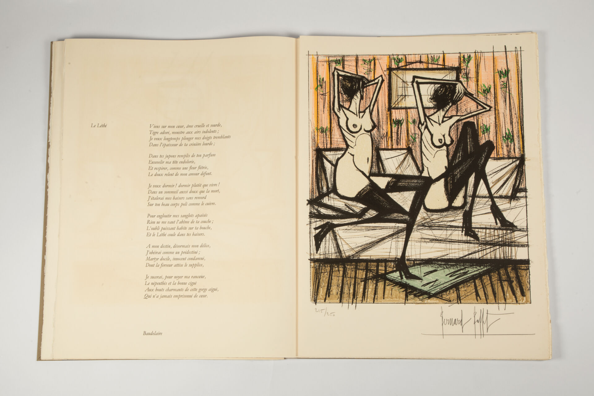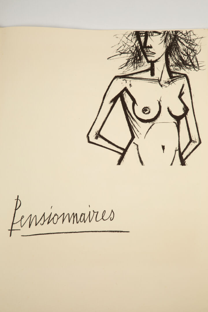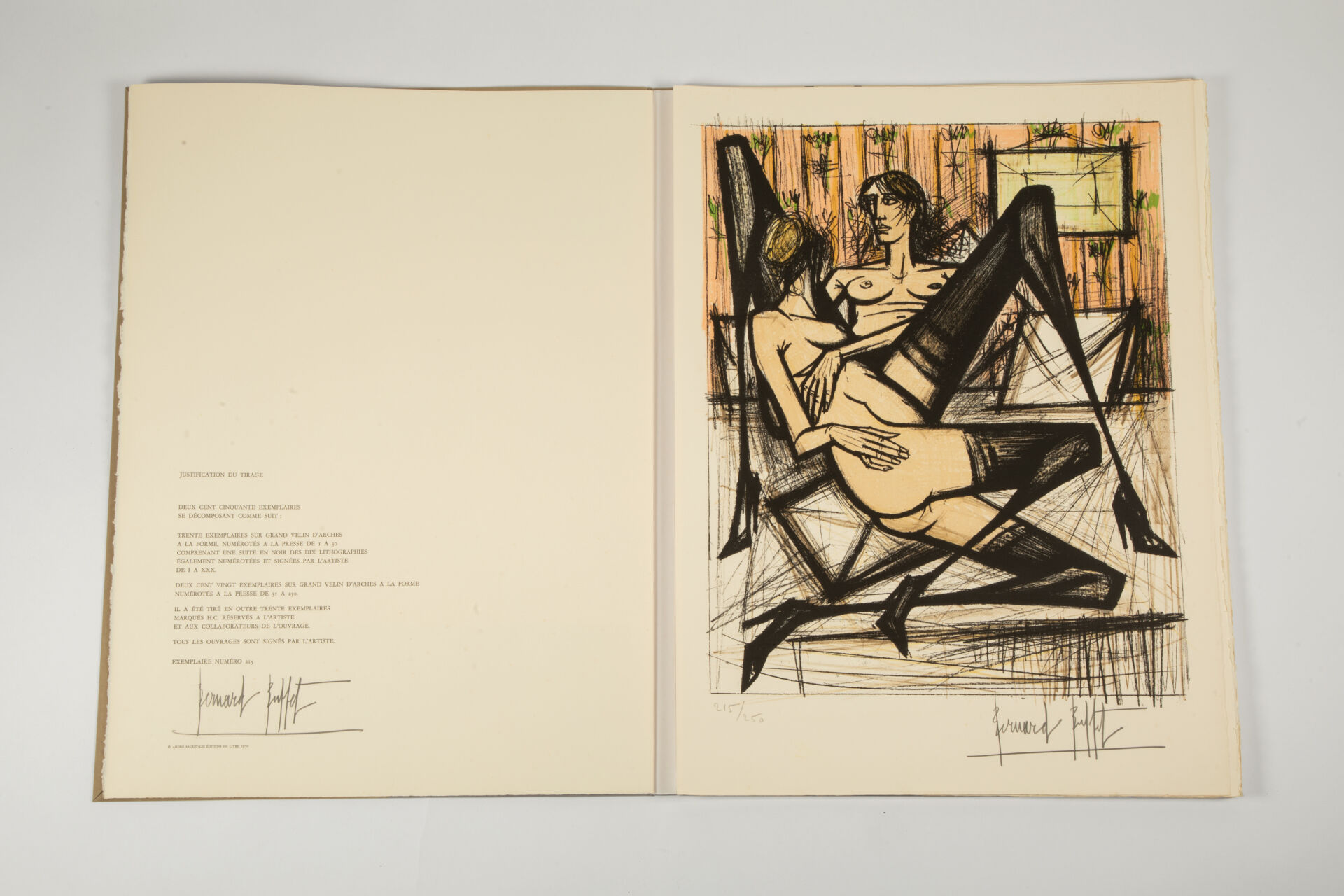 Ouvrage n°215 en feuilles Grand Vélin d’Arches sous emboîtage cartonné toilé beige comprenant diverses lithographies (dont 9 signées numérotées et en couleurs) originale tirées par les presses de Mourlot Frères à Paris, signées hors planche et numérotées 215/250.