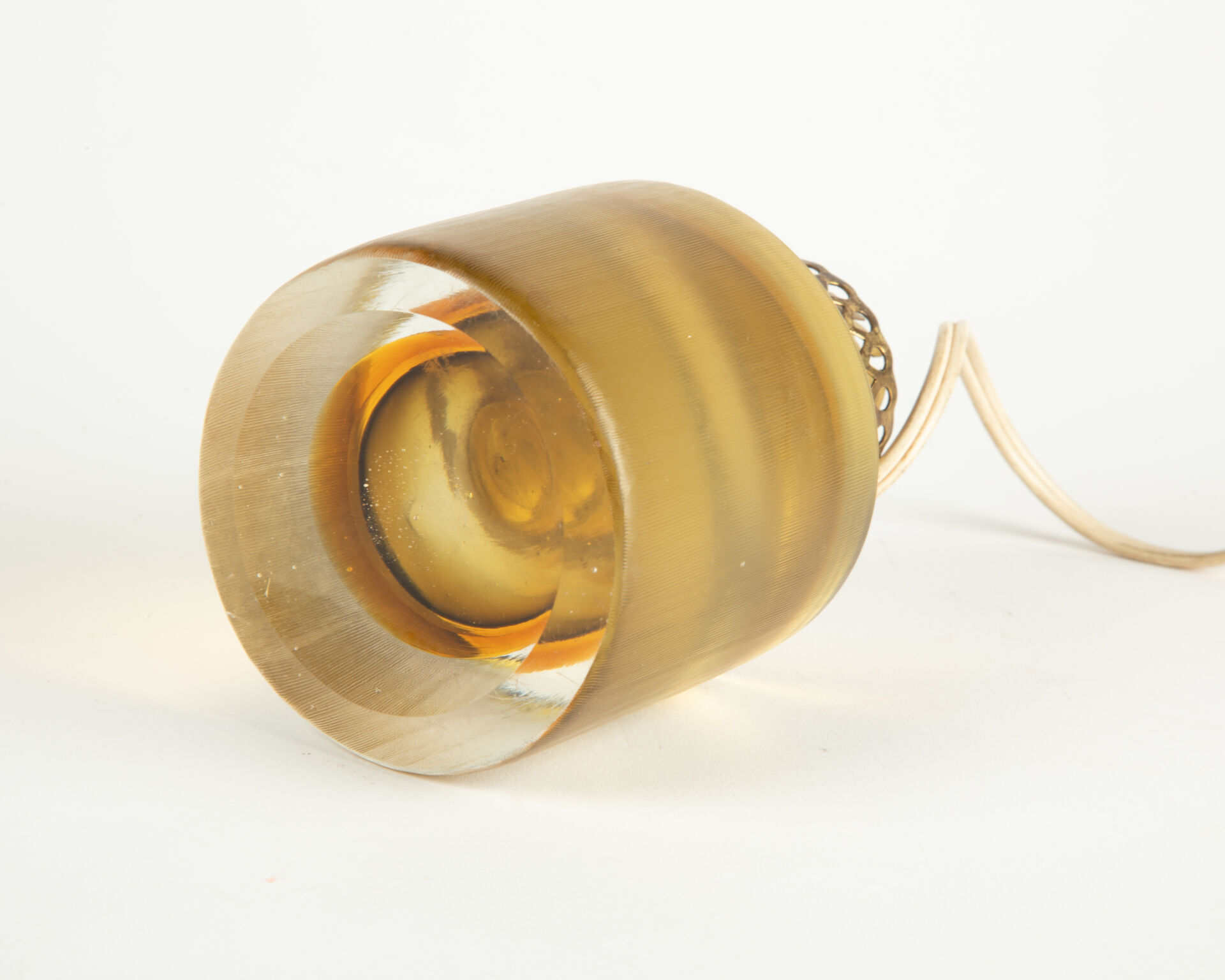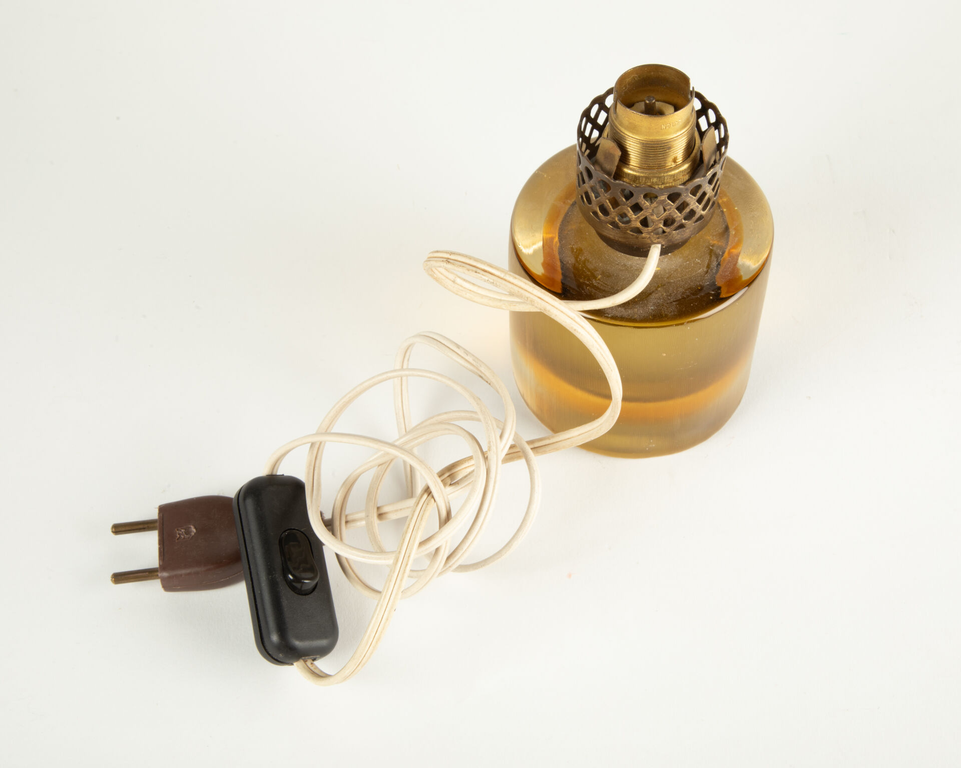 Pied de lampe en verre teinté ambre partiellement incisé et dépoli.