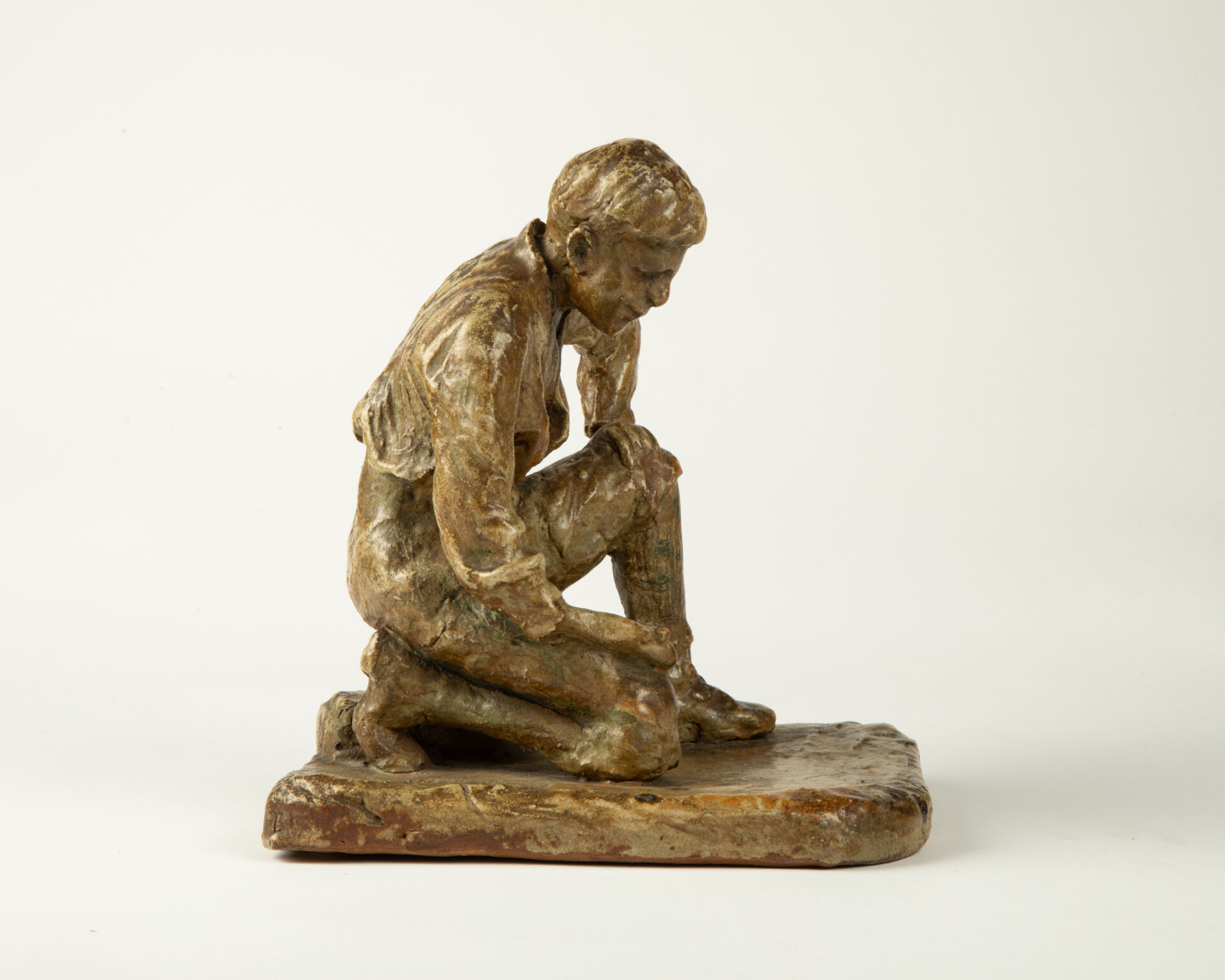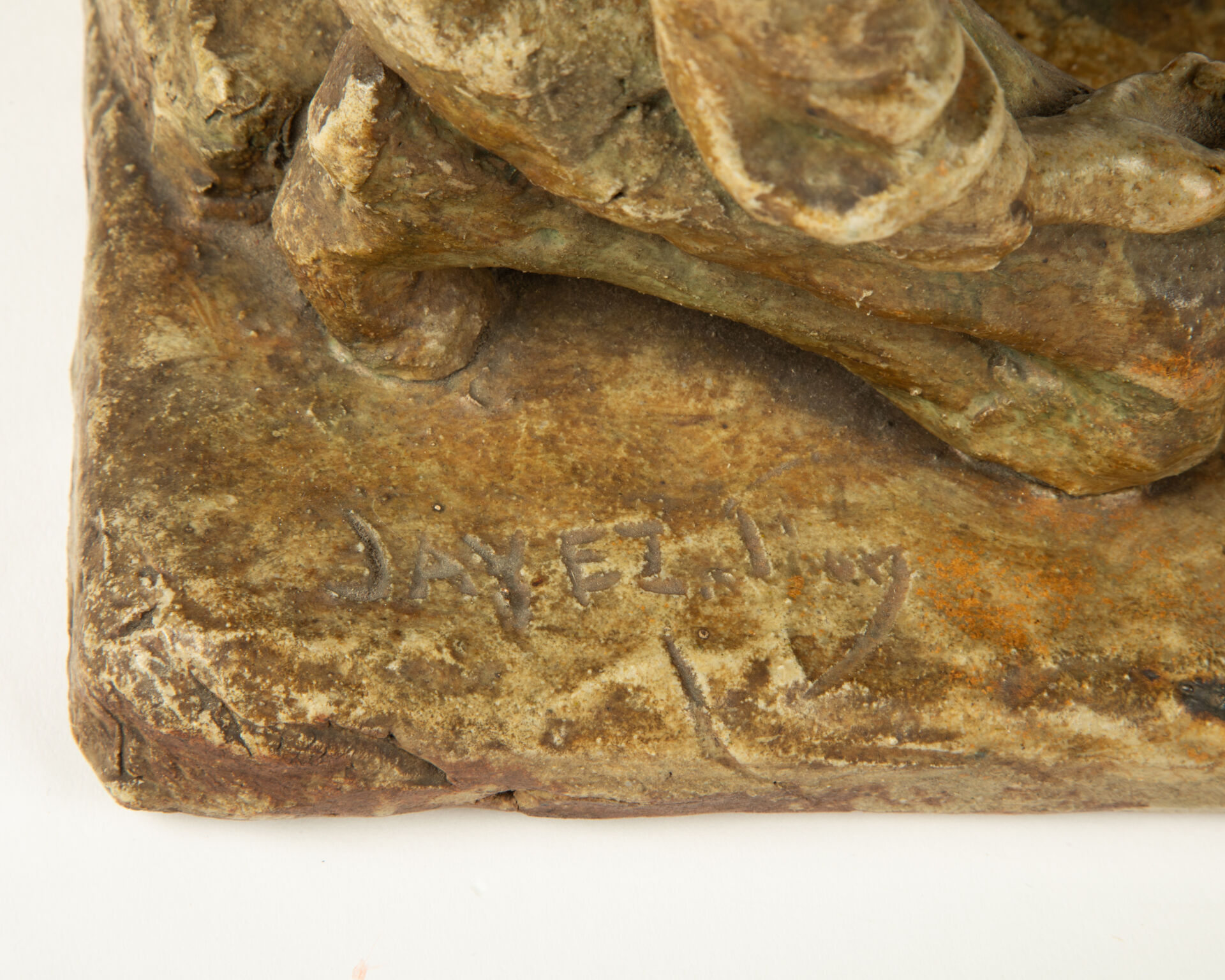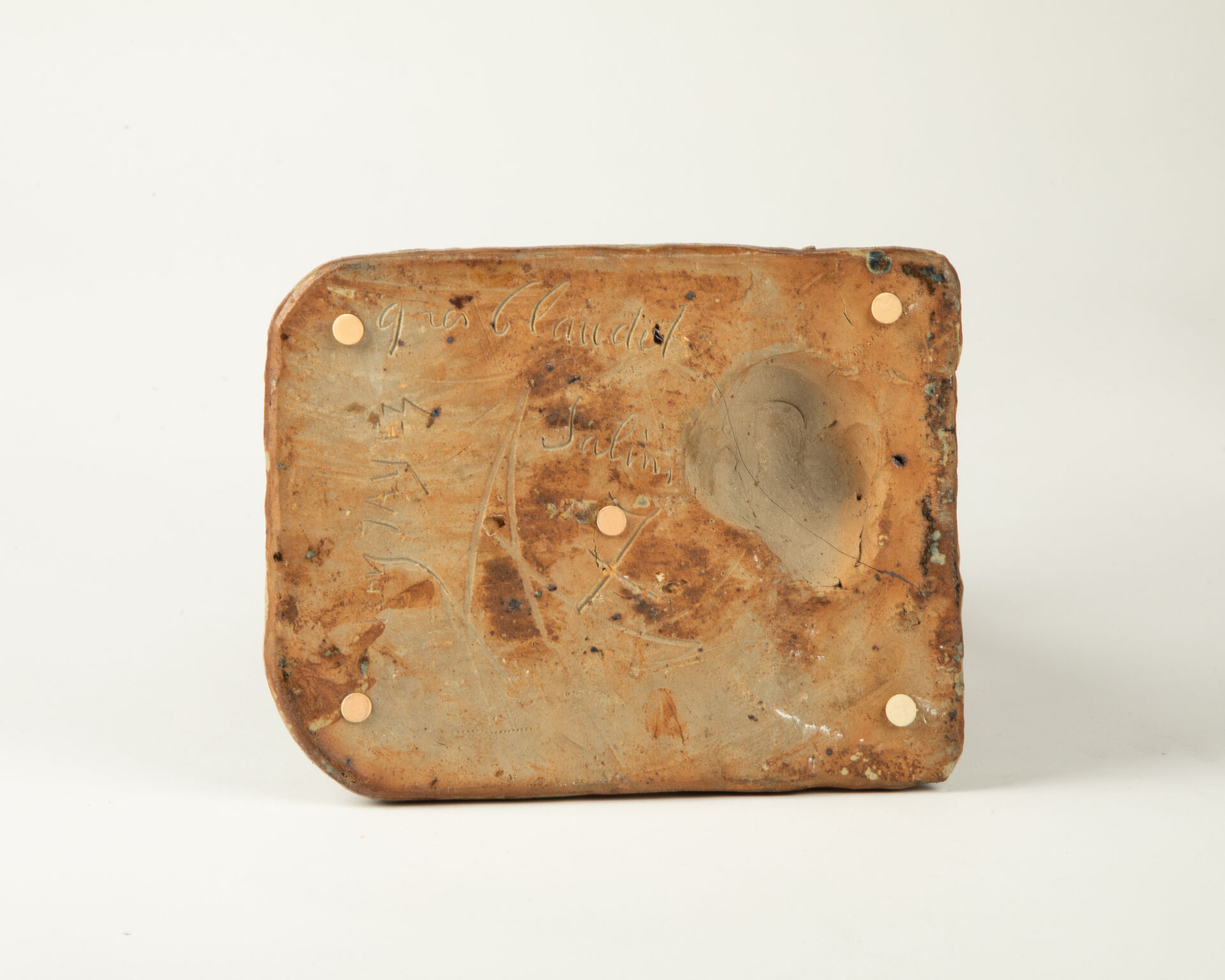 Sujet en grés, signé sur la terrasse, titré et localisé sous la base