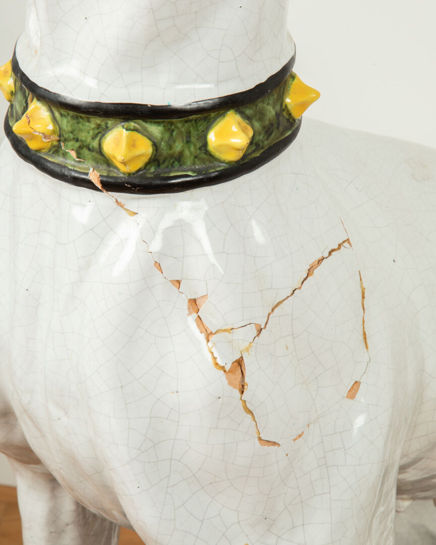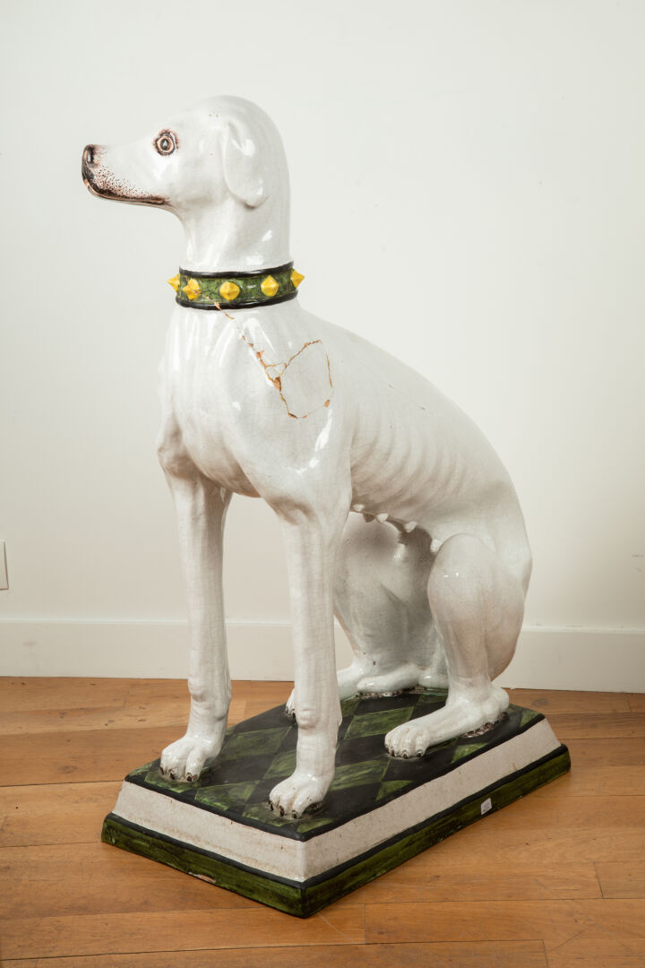 92 ESTIMATION: 100 / 150 € Grand chien assis en faïence polychrome Accidents et restaurations notamment au niveau du cou Travail début XX° H : 97 – L : 38 – P : 57 cm LAISSER UN ORDRE ORDRE D'ACHAT Civilité MmeMlleMr Carte d'identité * Le fichier doit être au format .pdf, .jpeg, .jpg ou .png et ne doit pas dépasser les 5 Mo. Relevé d'identité bancaire * Le fichier doit être au format .pdf, .jpeg, .jpg ou .png et ne doit pas dépasser les 5 Mo. Je souhaite être informé des actualités et des prochaines ventes de SuducaJe reconnais avoir lu, compris et accepté la politique de confidentialité de Suduca
