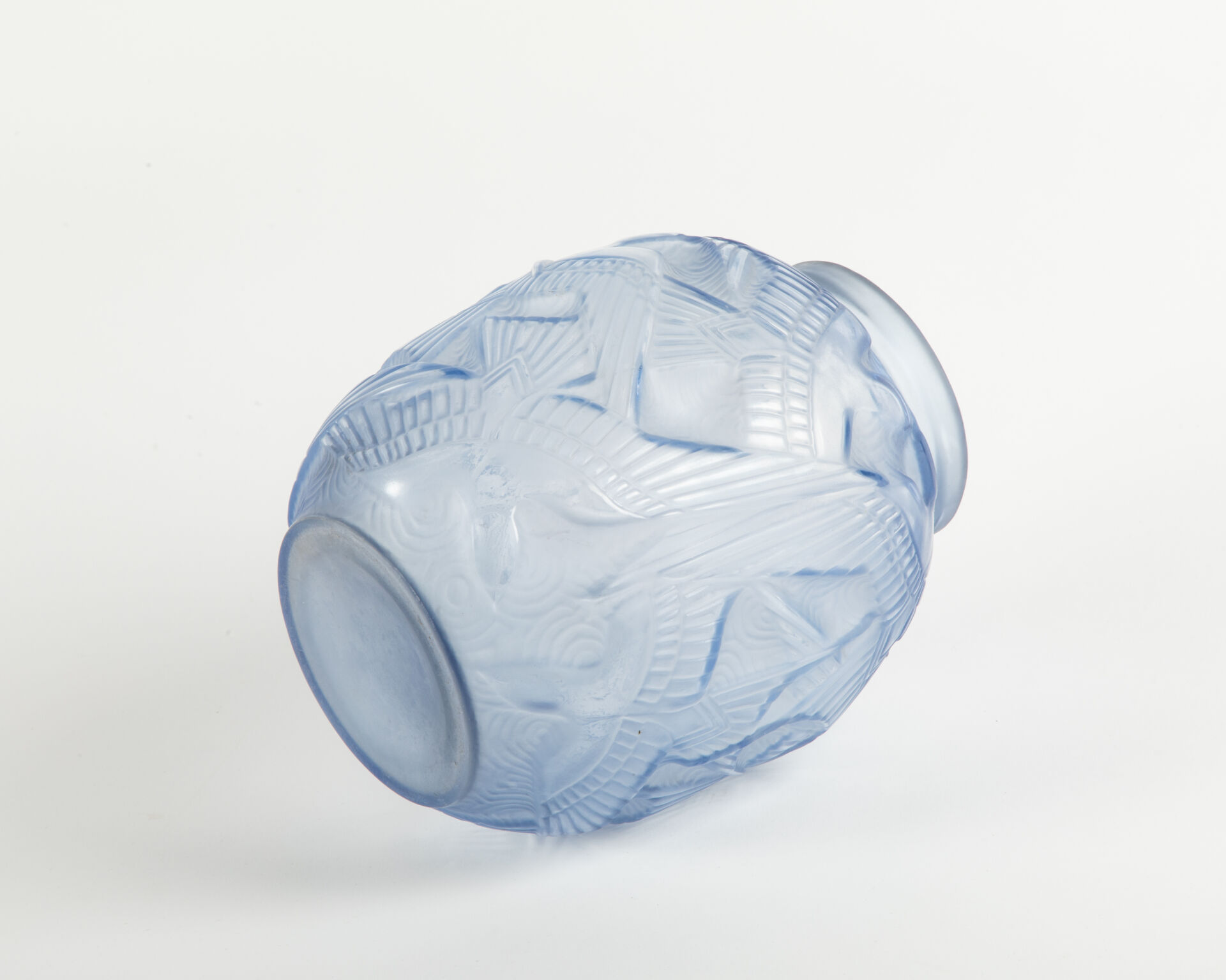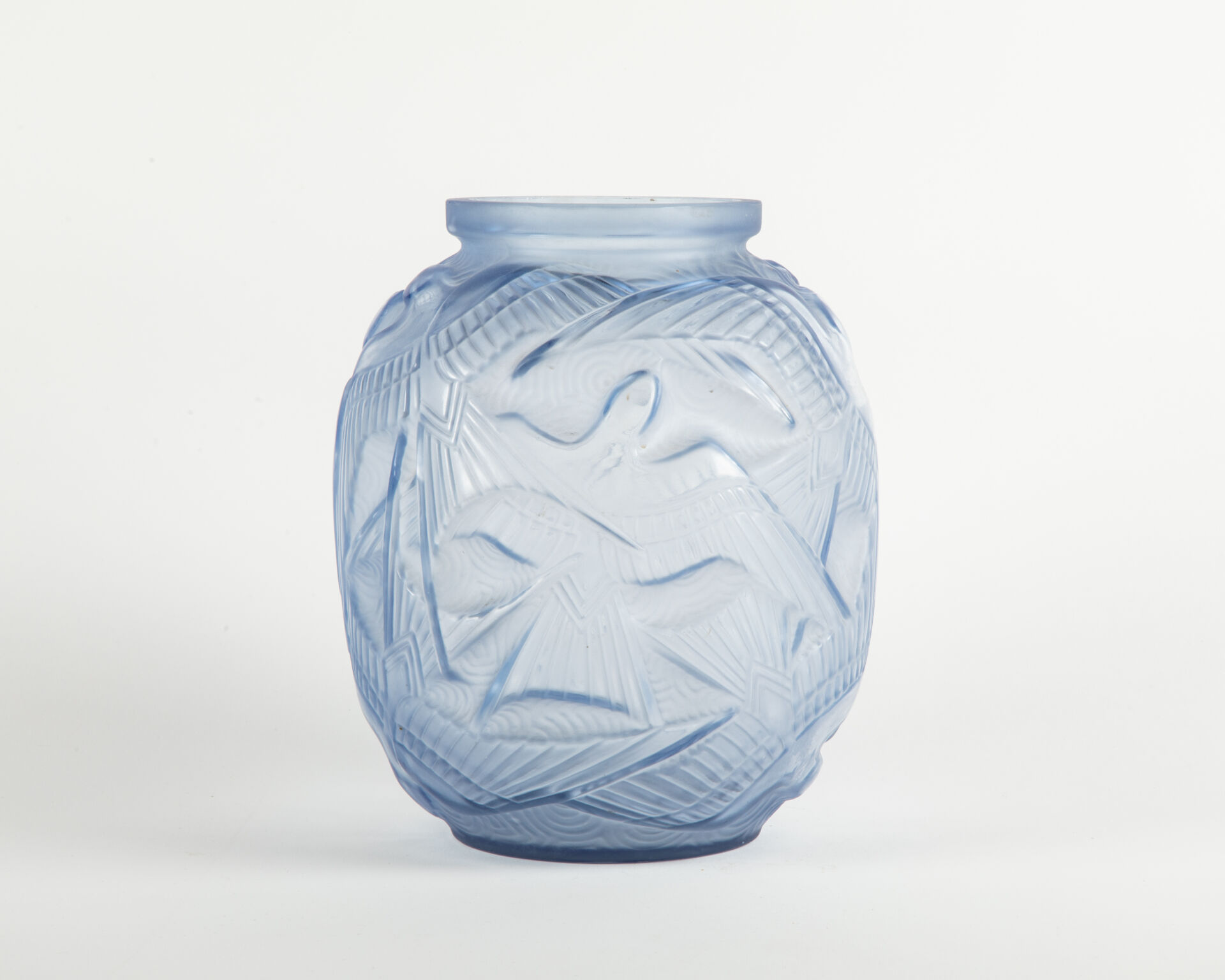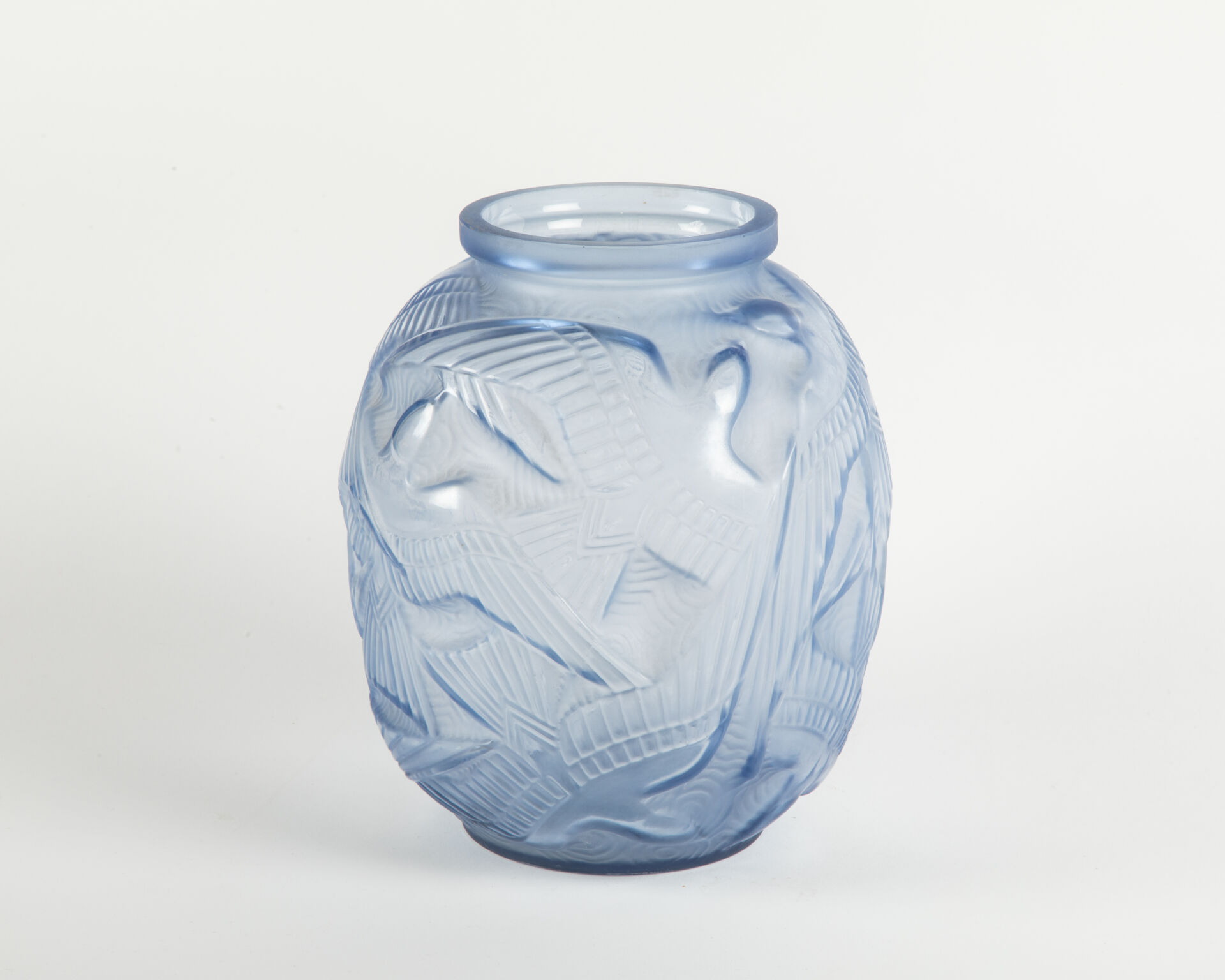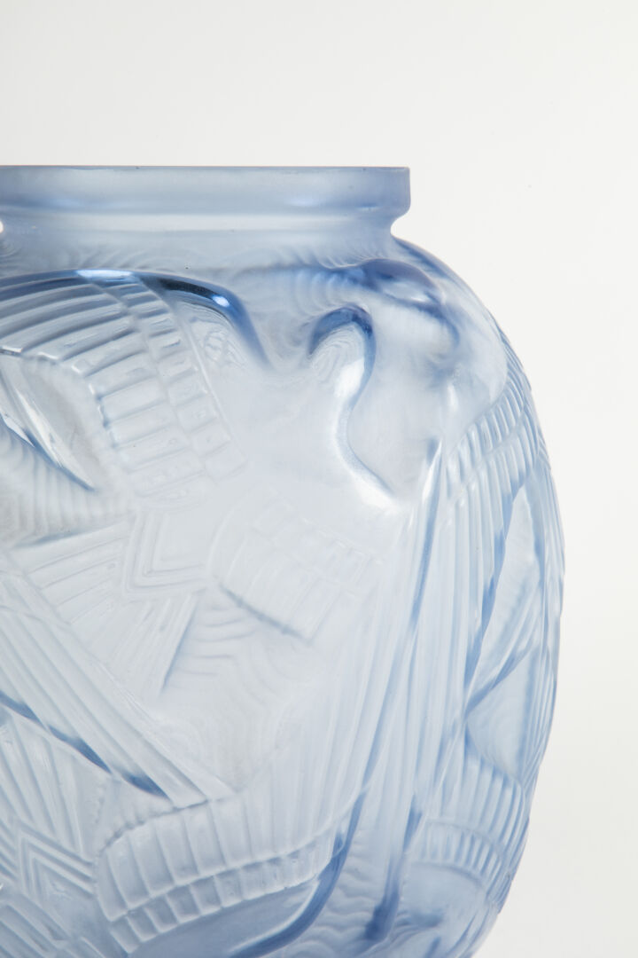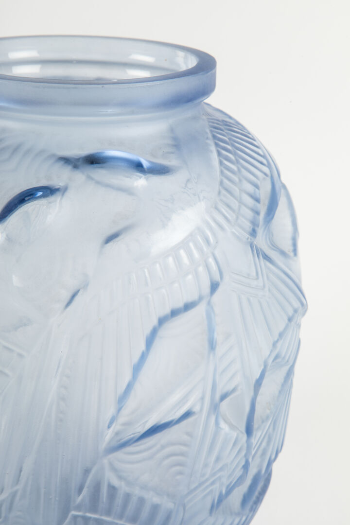 Vase boule en verre pressé moulé à décor d’oiseaux