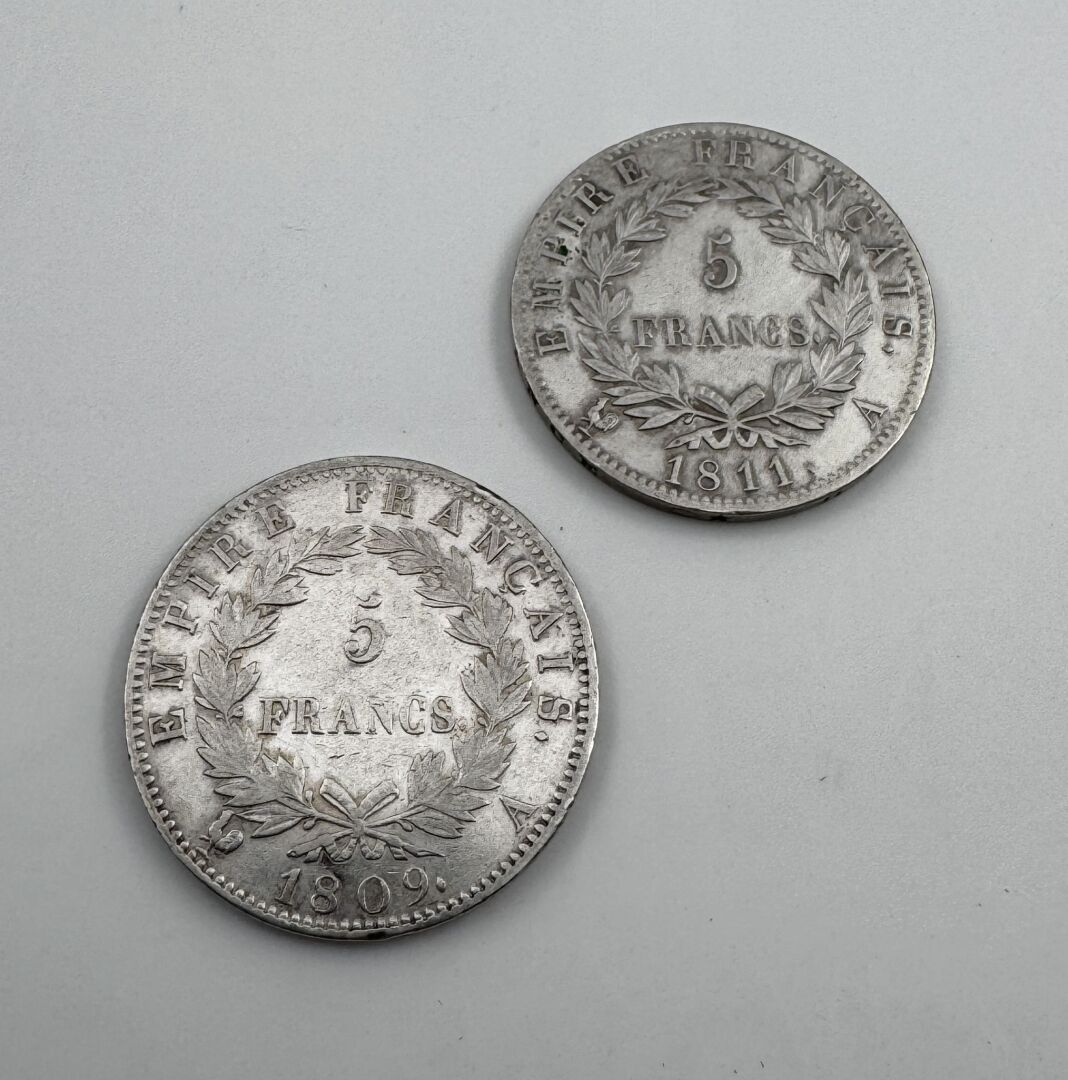 NAPOLEON I / EMPIRE – Lot de deux cinq francs argent 1809, 1811