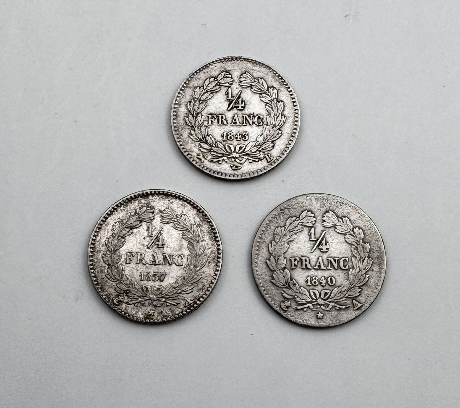 125 ESTIMATION: 30 / 60 € LOUIS PHILIPPE – Lot de trois quart de franc argent 1837, 1840, 1843 A examiner LAISSER UN ORDRE ORDRE D'ACHAT Civilité MmeMlleMr Carte d'identité * Le fichier doit être au format .pdf, .jpeg, .jpg ou .png et ne doit pas dépasser les 5 Mo. Relevé d'identité bancaire * Le fichier doit être au format .pdf, .jpeg, .jpg ou .png et ne doit pas dépasser les 5 Mo. Je souhaite être informé des actualités et des prochaines ventes de SuducaJe reconnais avoir lu, compris et accepté la politique de confidentialité de Suduca