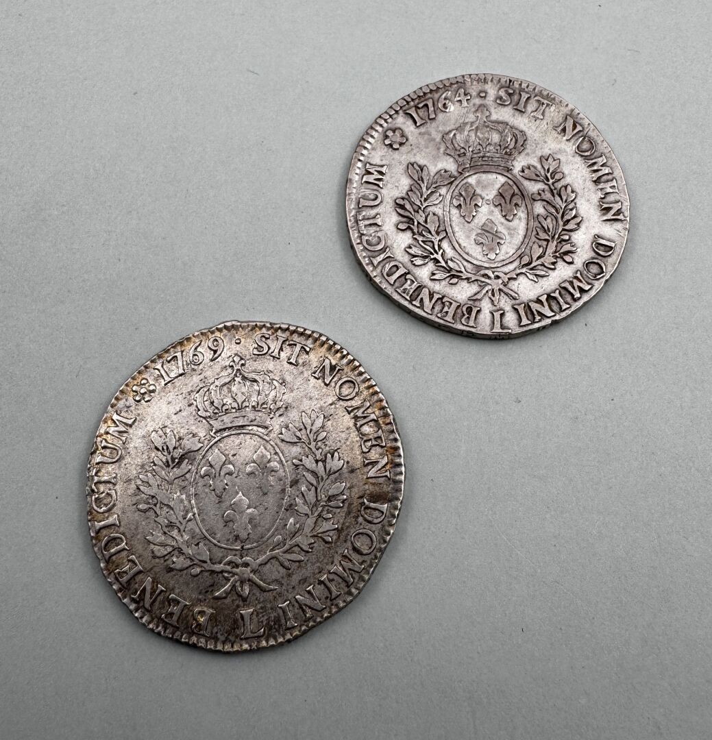 ROYALE – Louis XV lot de deux écus argent au bandeau 1764 1769 L Bayonne