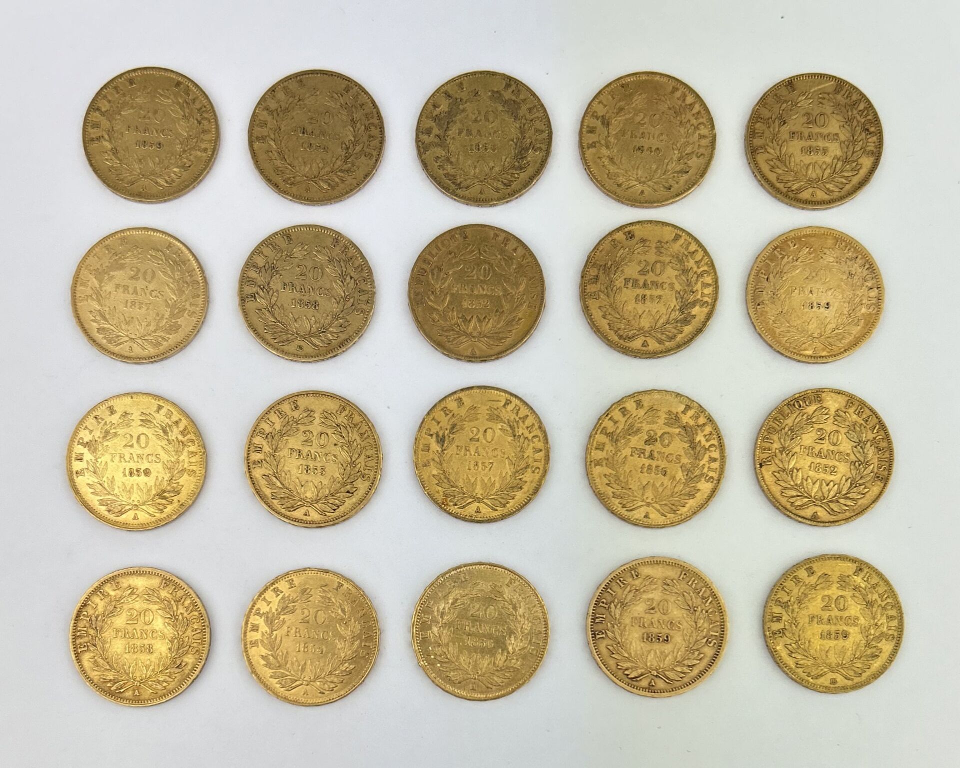 20 pièces de 20 F or Napoléon III Tête nue
