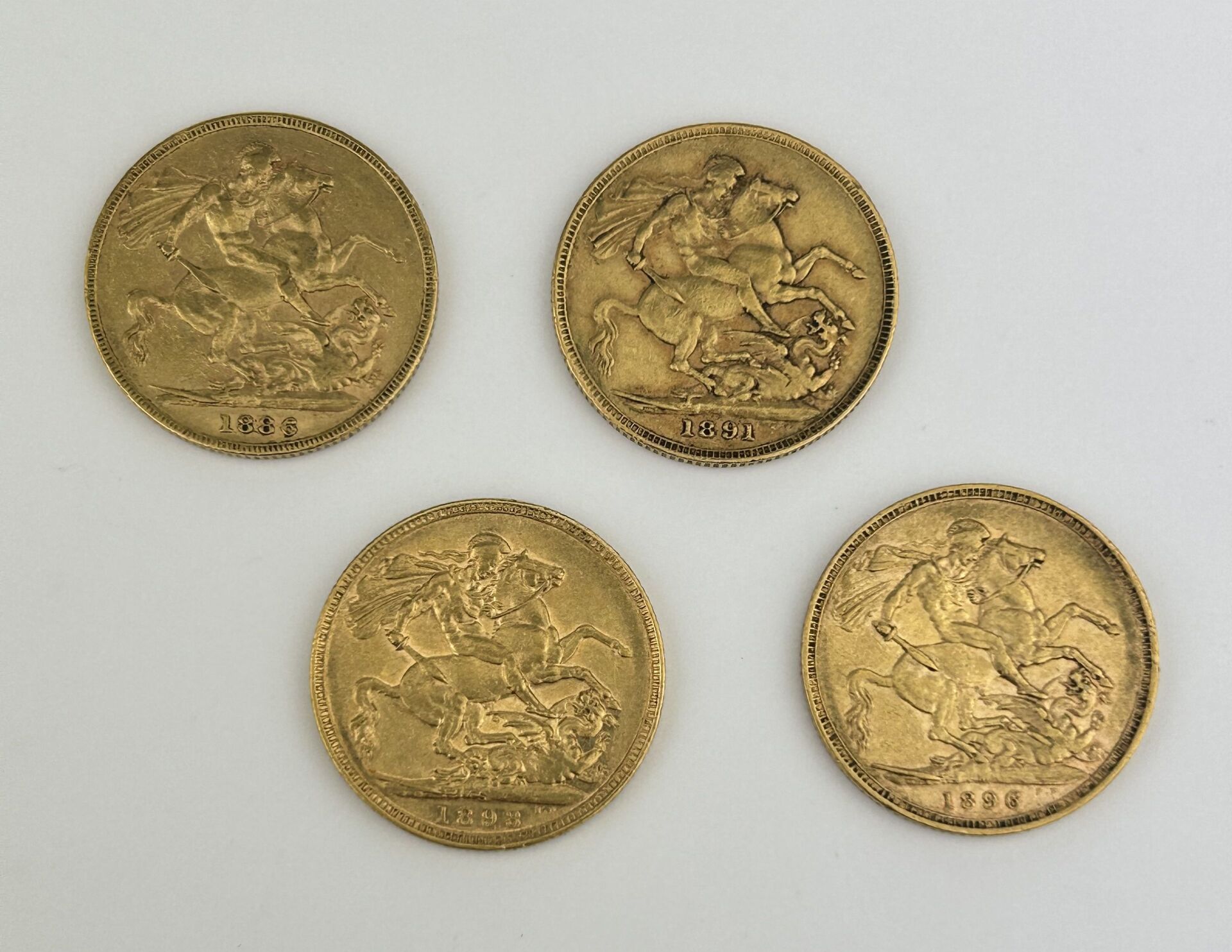 4 pièces Souverains or Reine Victoria dont jeune, Saint Georges