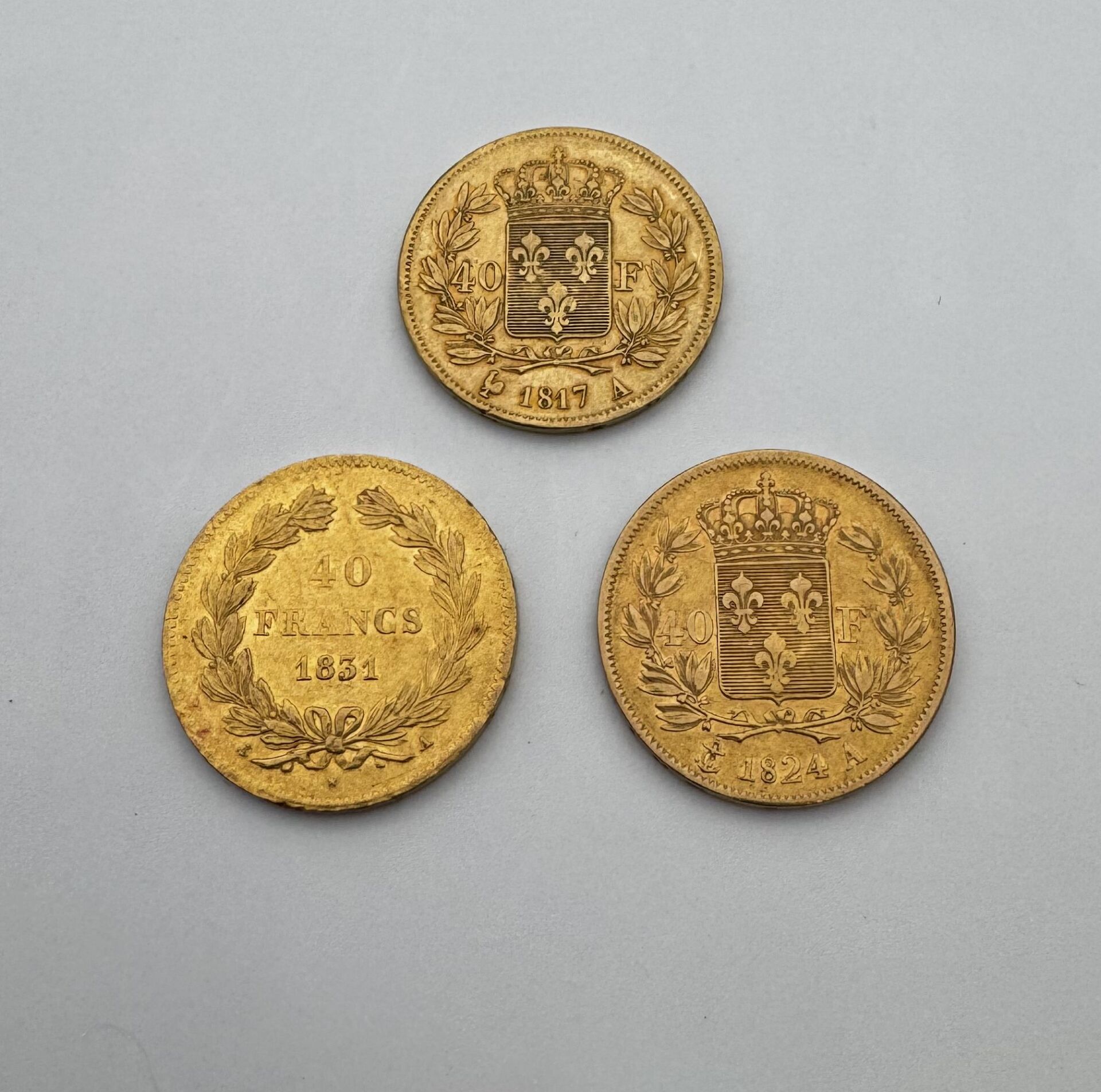 Lot de trois 40 Francs Or 1817 1824 1831