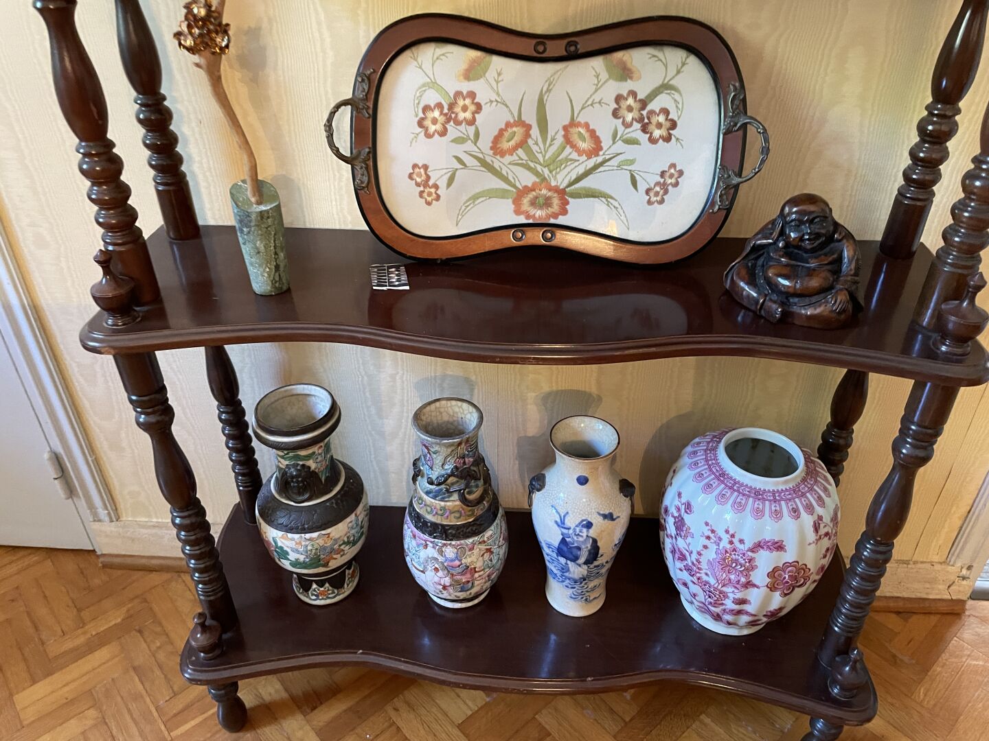 77 Ensemble de bibelots et objets de vitrine dans le gout de l’Asie dont pierres dures, porcelaines dont Nankin, émaux cloisonnés et divers