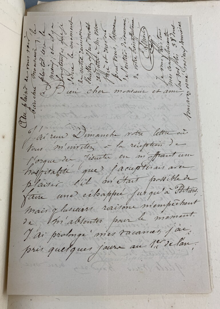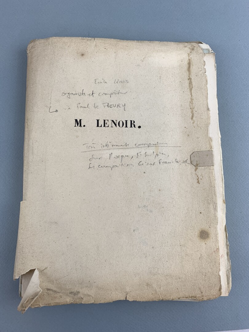 [ORGUE]. LENOIR (Émile). ENVIRON 42 LETTRES AUTOGRAPHES signées adressées à Paul de Fleury. 1863- février 1875. INTÉRESSANTE CORRESPONDANCE de l’organiste et compositeur Émile LENOIR dont le fil conducteur est l’orgue, Saint-Sulpice, ses compositions, César Franck, etc. D’après une note sur la chemise qui contient ces lettres, cette correspondance est adressée au comte Paul de FLEURY (1839-1923), érudit et spécialiste de l’orgue, auteur notamment d’un Dictionnaire biographique des facteurs d’orgue nés ou ayant travaillé en France publié en 1928. Dans une lettre datée du 29.12.1863, Émile Lenoir exprime le souhait de pouvoir présenter ses voeux à Madame de Fleury, ce qui accrédite l’identité du destinataire. BEL ENSEMBLE.