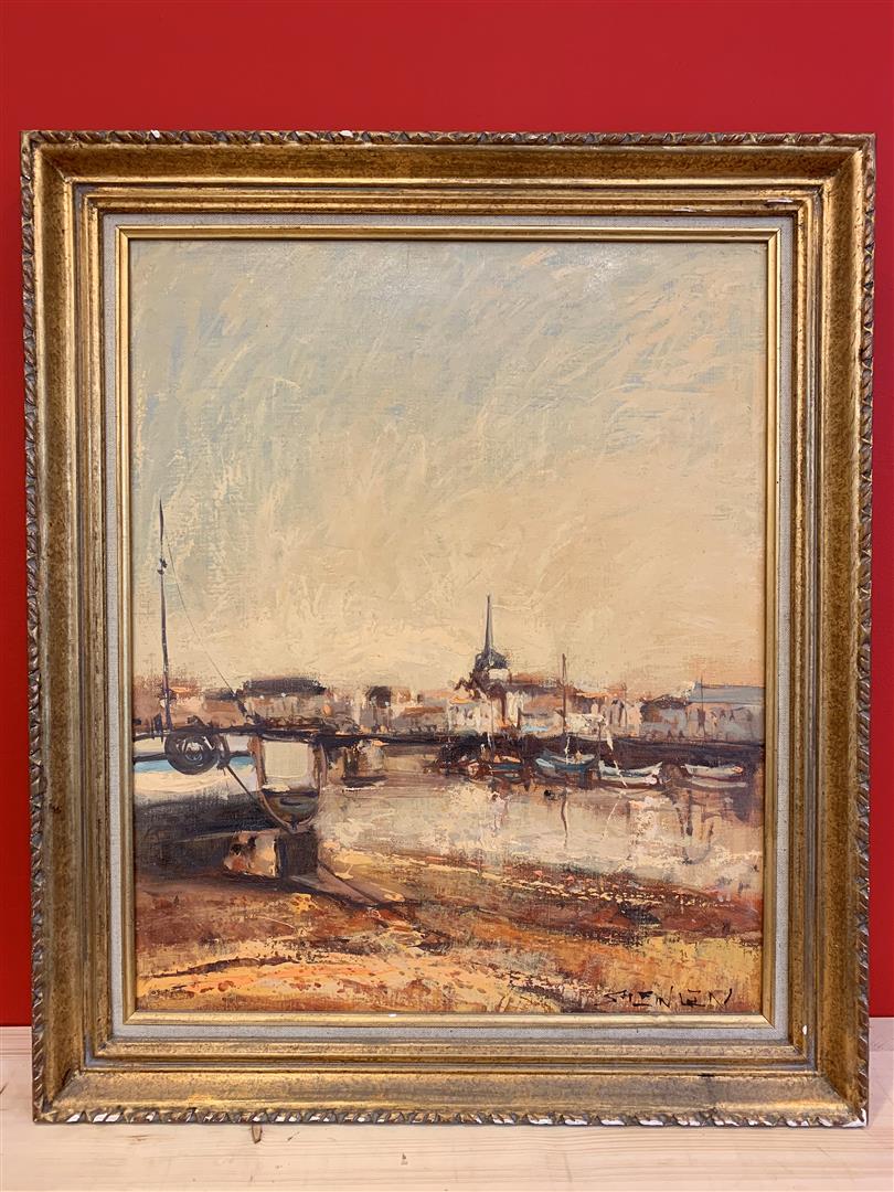167 ESTIMATION: 100 / 200 € Aimé Daniel STEINLEN ( 1923-1996) « A quai » Huile sur toile, signée en bas à droite, titrée au dos 61 x 50 cm