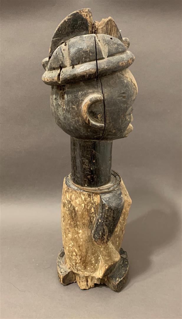 61 RÉSULTAT: 550 € ESTIMATION: 700 / 900 € Buste reliquaire TSOGHO, Gabon Figure reliquaire d’ancêtre, protecteur des reliques du clan ou du village, bois reste de polychromie Vers 1950 H : 50 cm