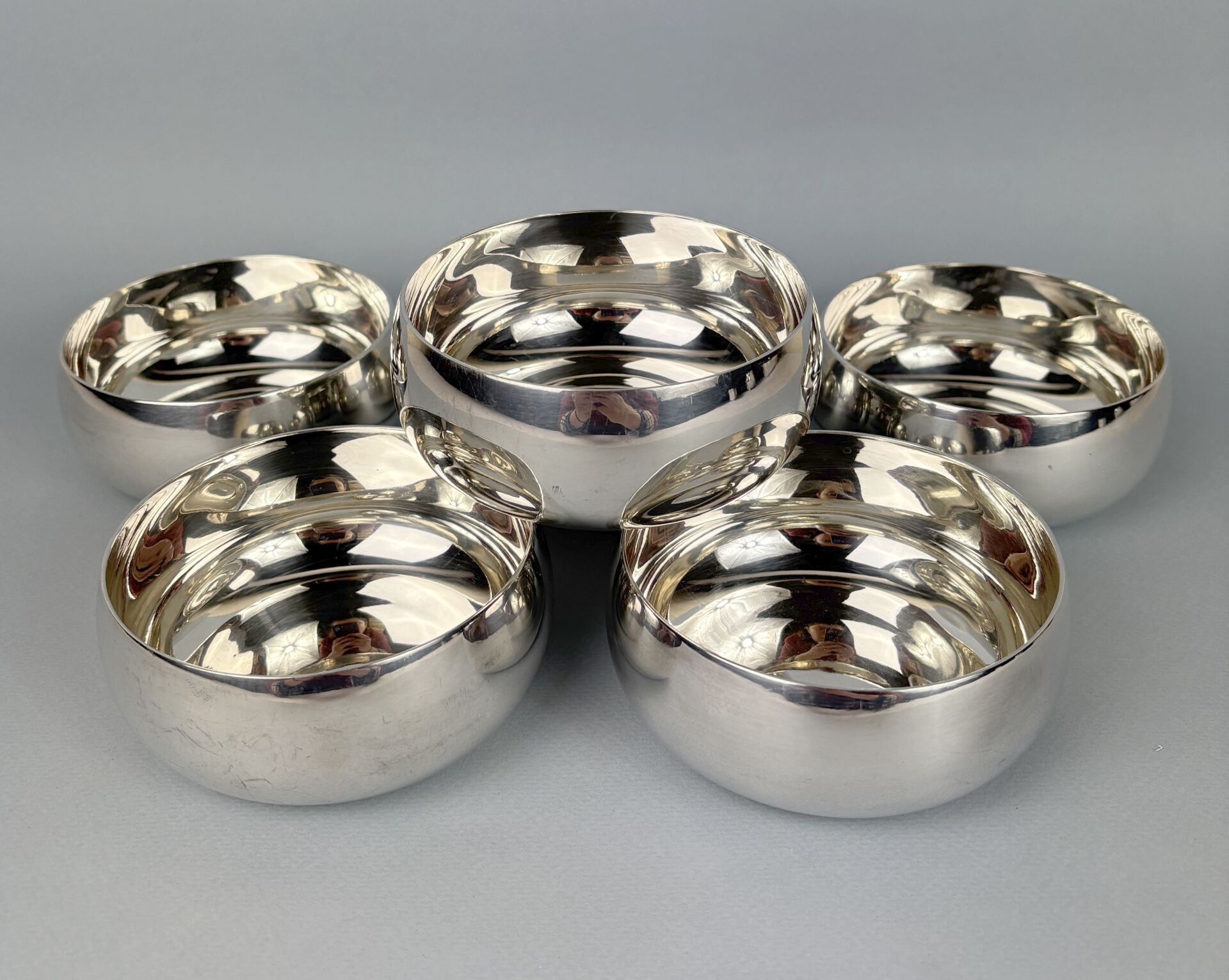 Suite de six coupelles rince-doigts en métal argenté