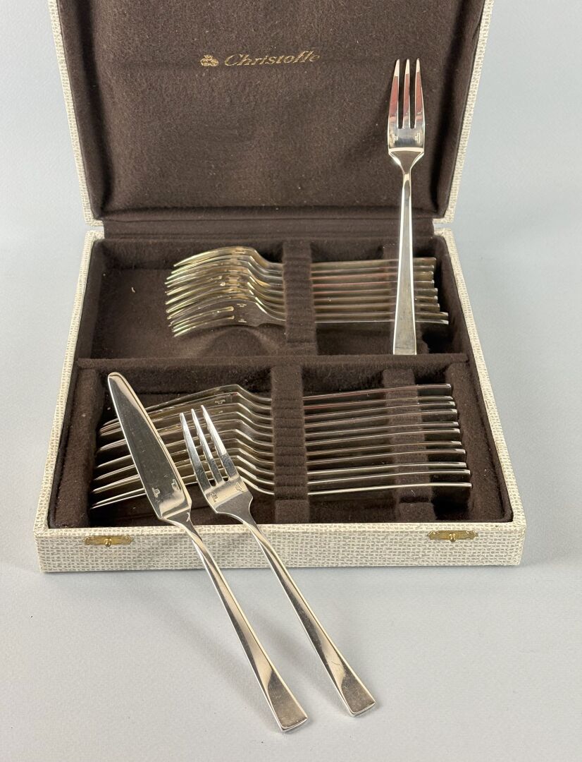 Modèle Concorde – Suite de douze couverts à poisson en métal argenté