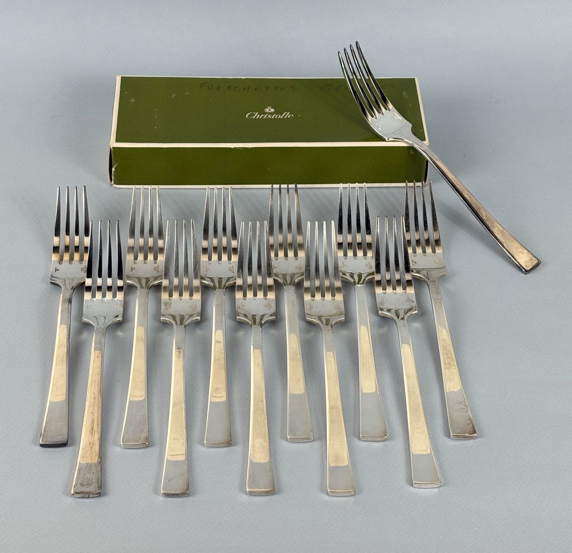 139 ESTIMATION: 200 / 300 € CHRISTOFLE Modèle Concorde – Suite de douze couverts de table en métal argenté Dans deux boites