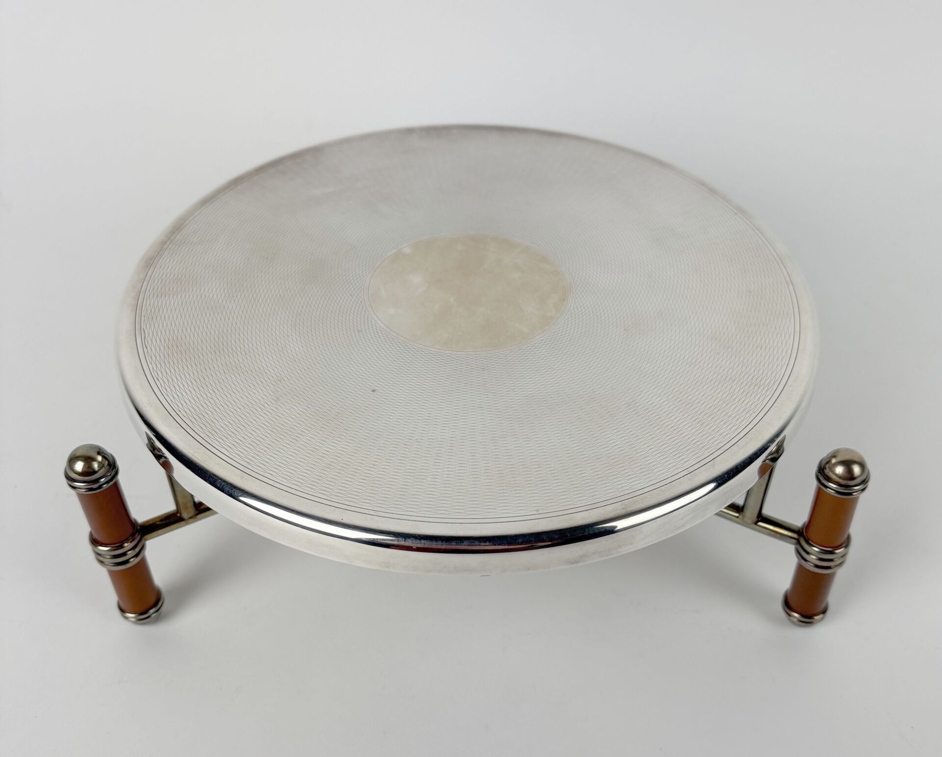 Modèle Talisman – Chauffe-plat en métal argenté et laque de chine ocre