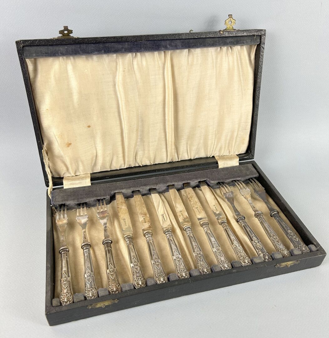 Coffret de quatre couverts à fruit en argent anglais à riche décor de coquilles