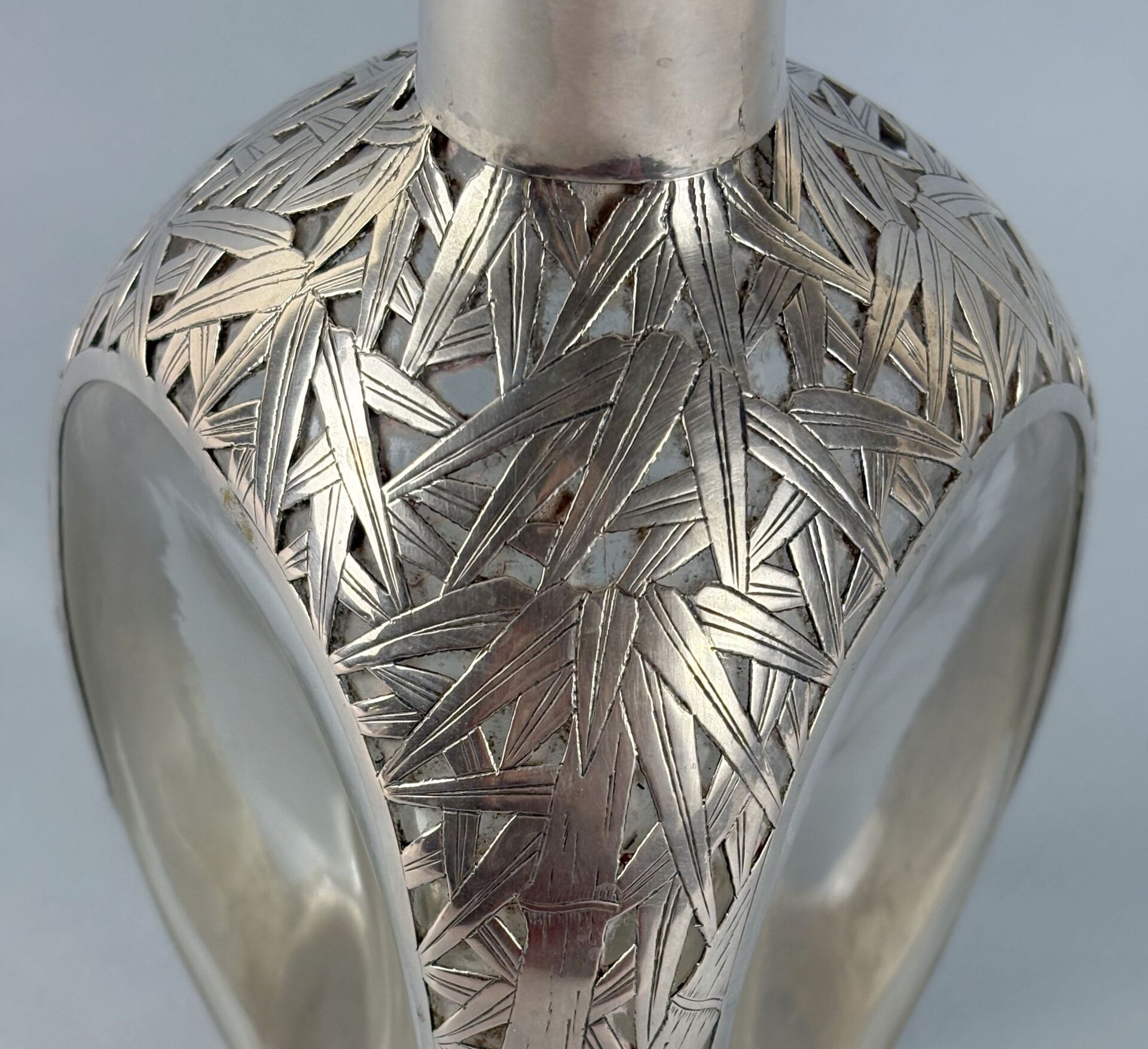 244 ESTIMATION: 80 / 100 € Carafe à whisky en verre, monture en argent à décor de bambou, le flacon portant la marque en relief sous la base « HAIG’S Whisky et UGB » Poids brut : H : 26 cm