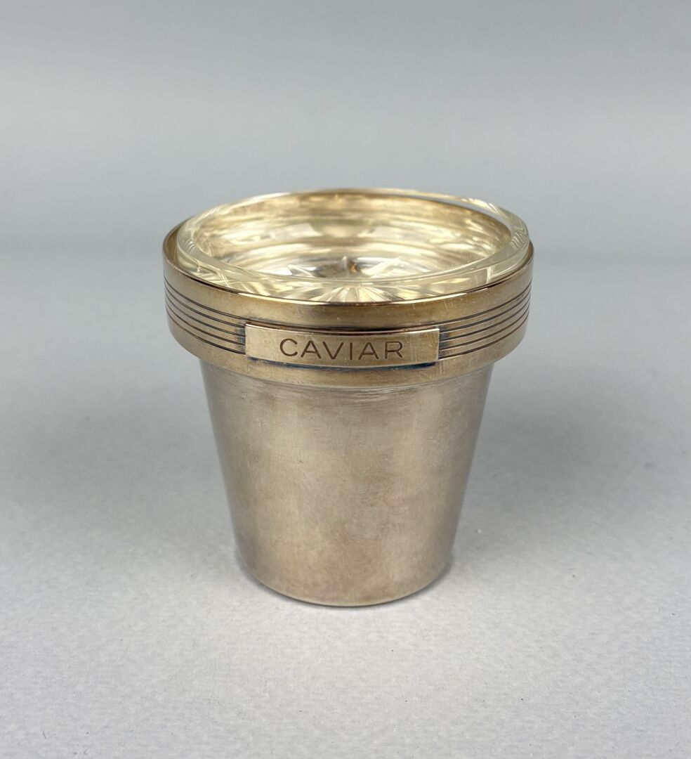 Petit rafraichissoir à caviar en métal argenté et cristal taillé figurant un vase de jardin
