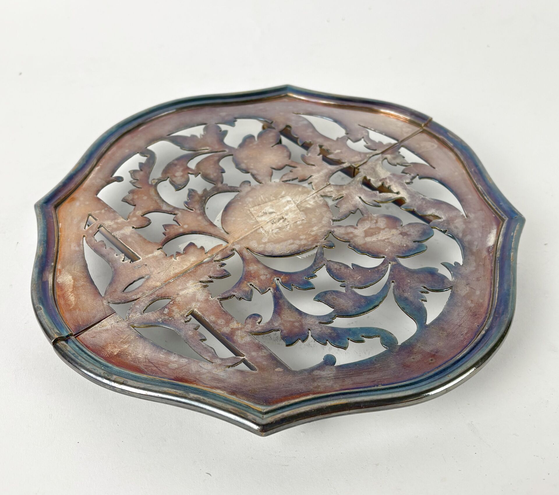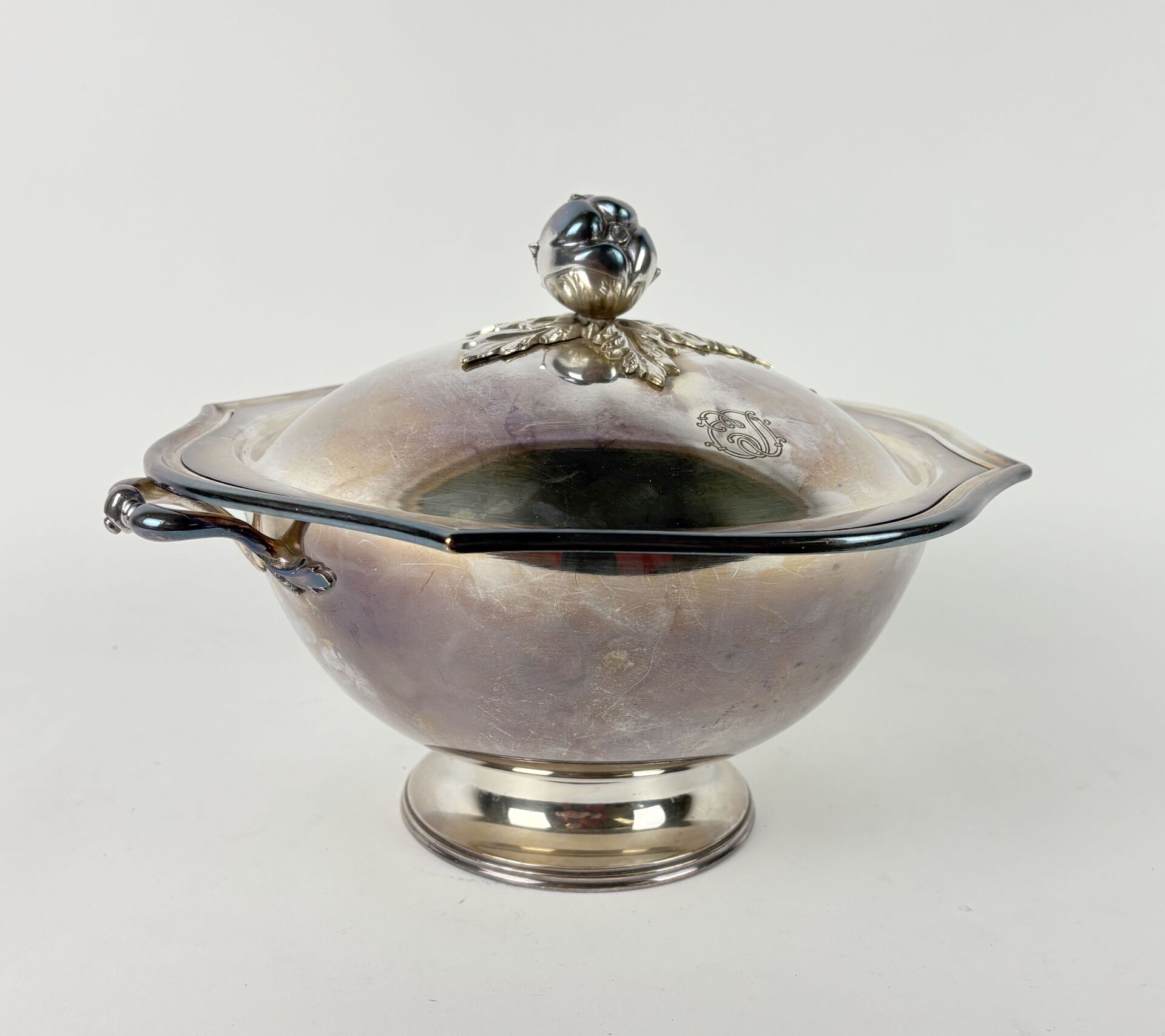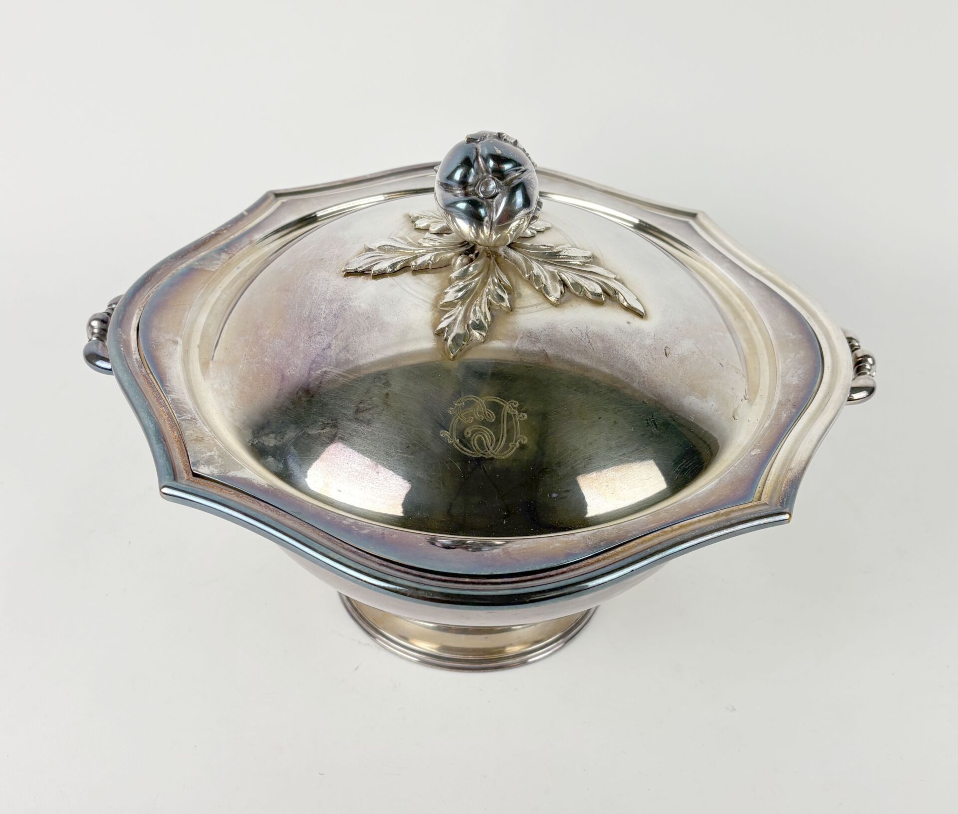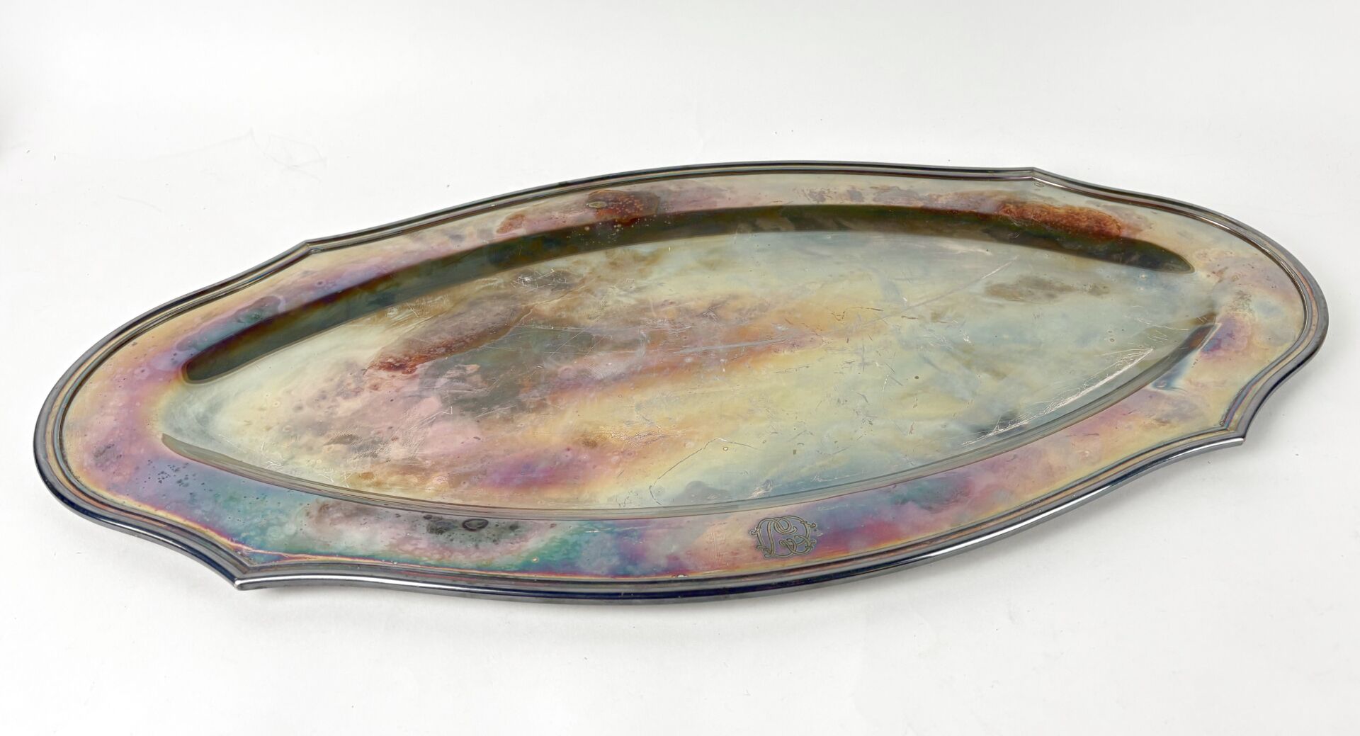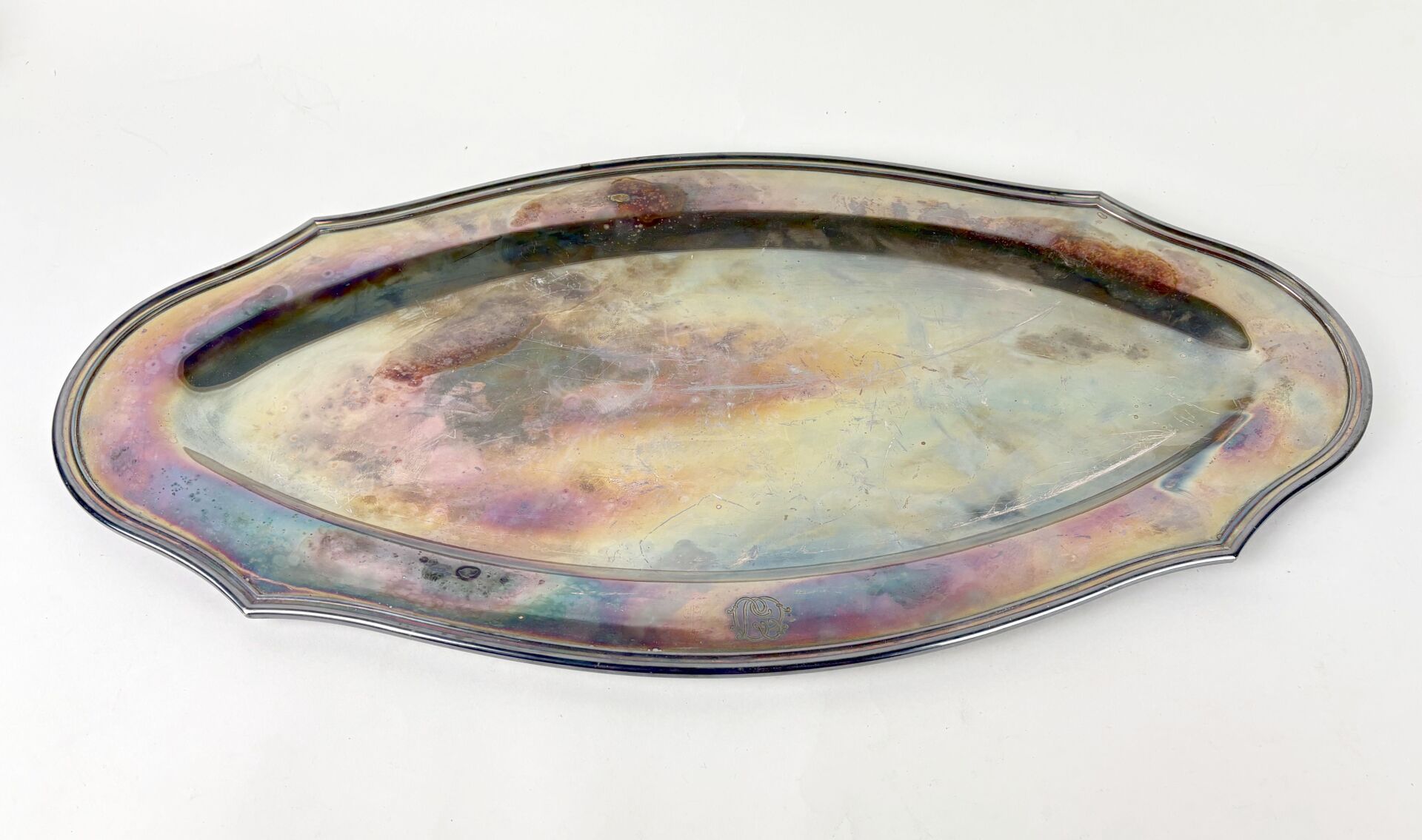 Important ensemble en métal argenté à bords à filets polylobés chiffré « TD » comprenant :