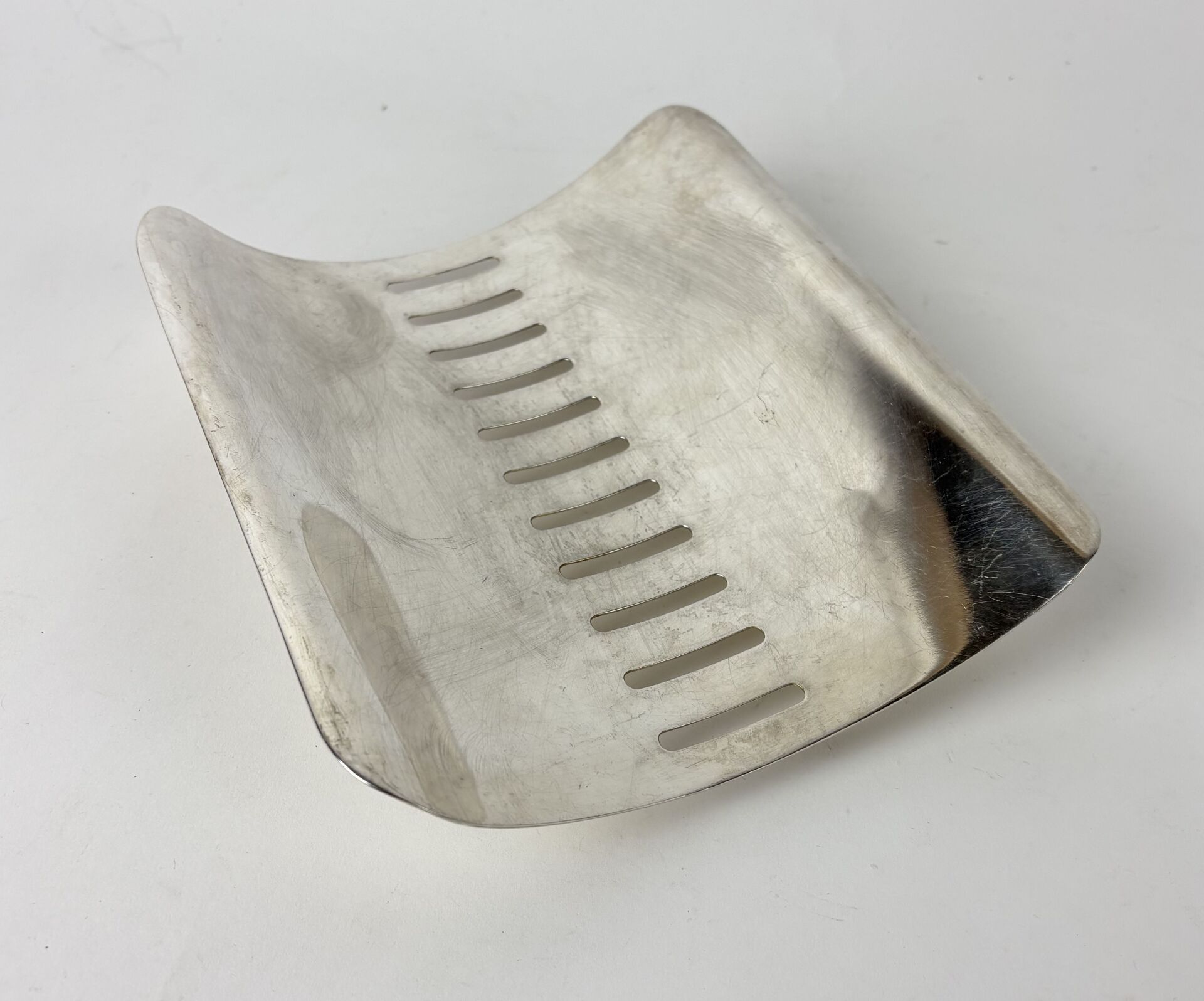 Plat à asperges en métal argenté ajouré