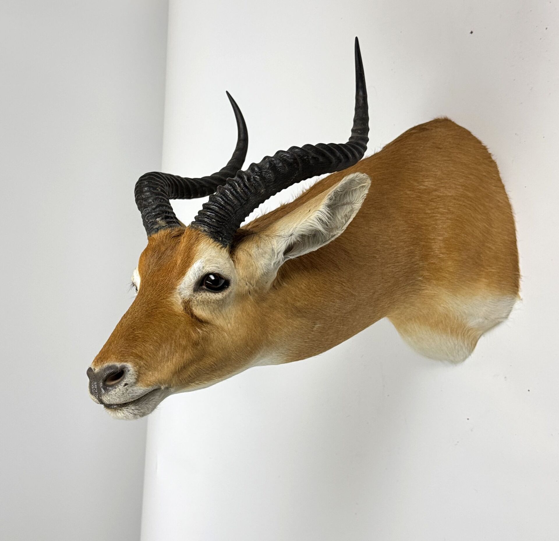 145 RÉSULTAT: 200 € ESTIMATION: 200 / 300 € Cope de buffon Kobus (adenota) Trophée de chasse naturalisé en cape H : 50 – P : 71 cm