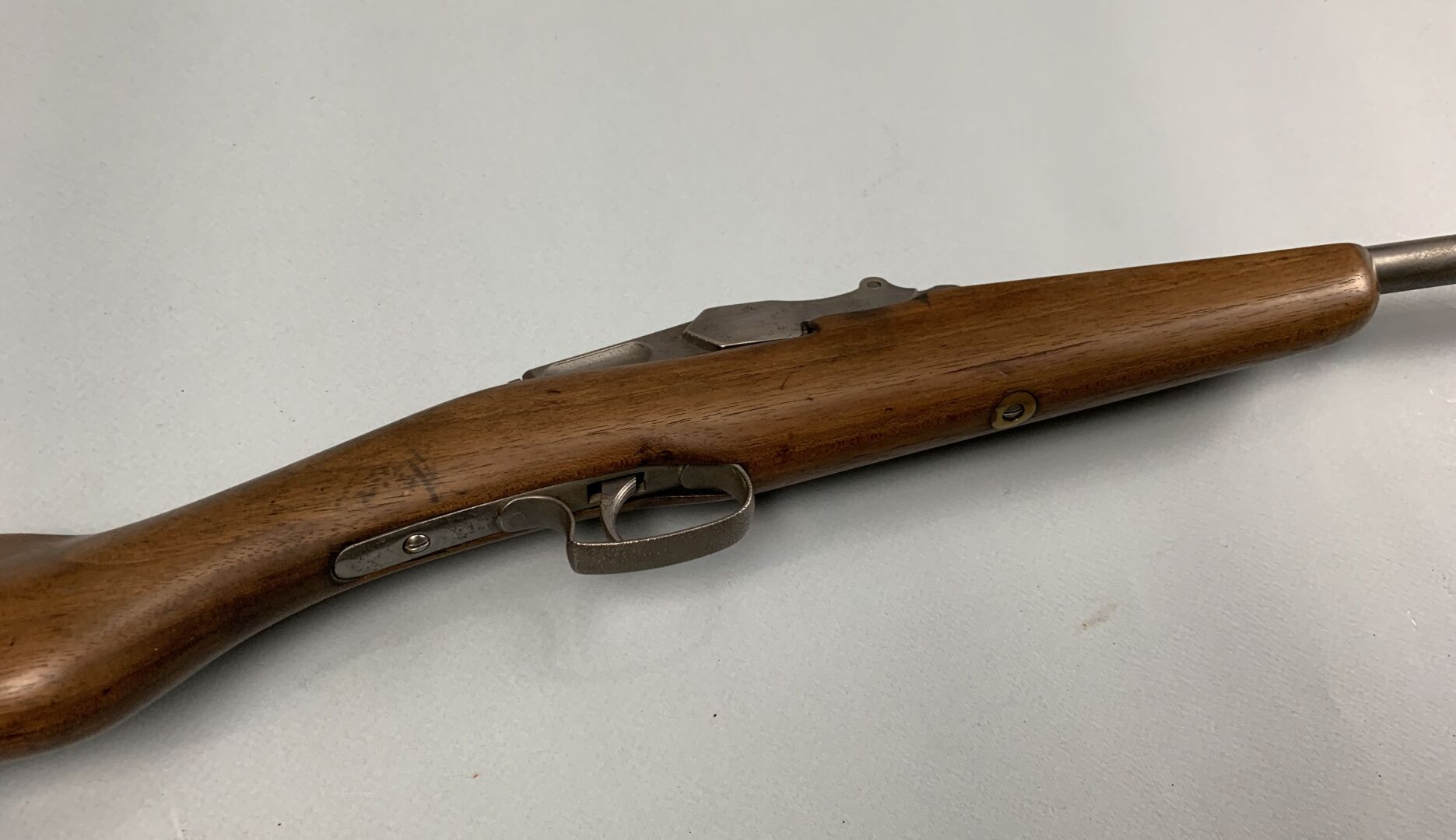 73 RÉSULTAT: 110 € ESTIMATION: 40 / 60 € Carabine de jardin système Warnant, calibre 12 mm, mécanisme fonctionnel, Arme numéro : 6241 Arme de Catégorie D Etat 2