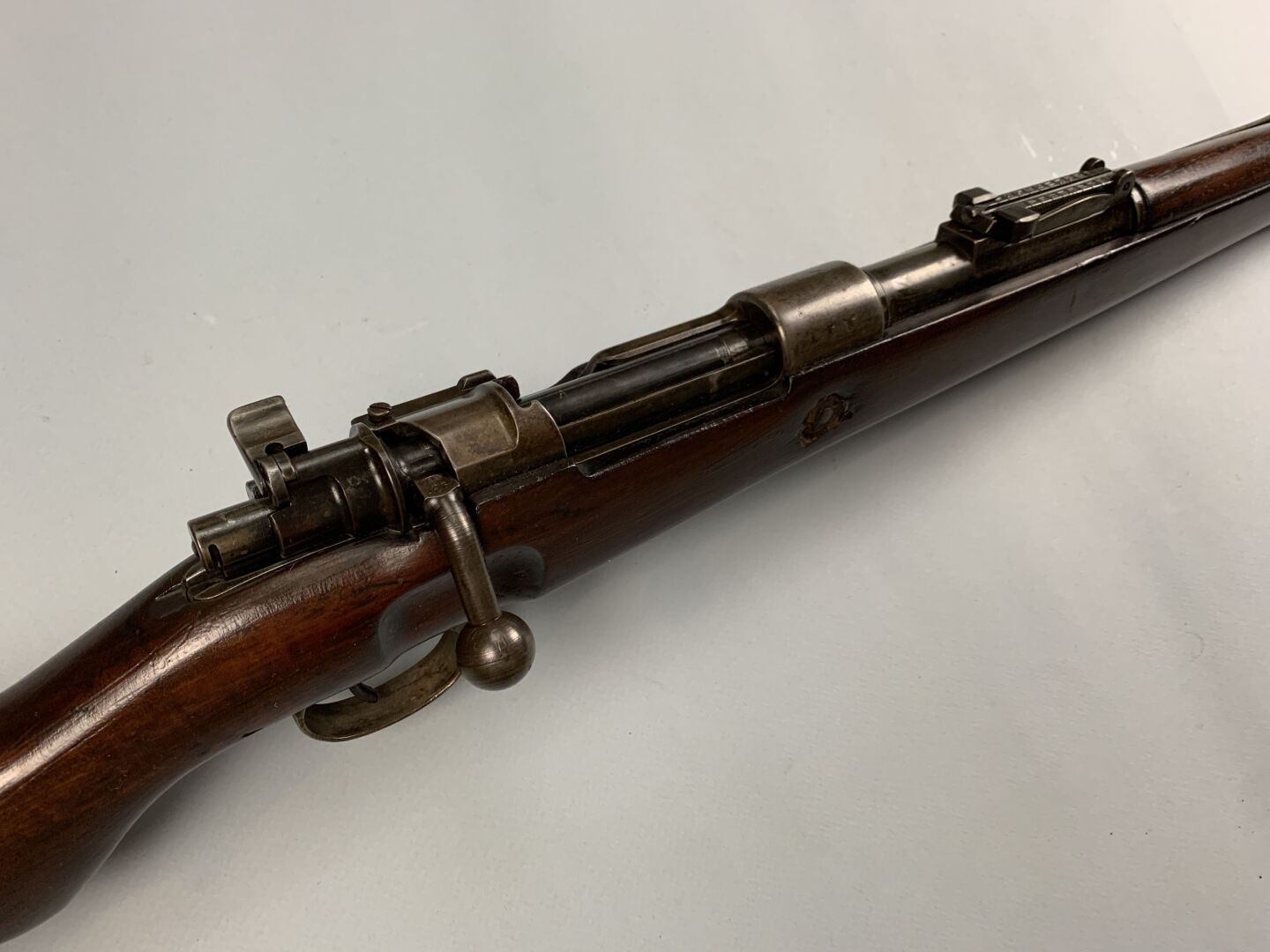 Carabine MAUSER 98 K calibre 8 x 60 S, monture noyer, plaque de couche plate, embouchoir plein postérieur, pas au numéro, fabrication 1939 usine code 147, arme restaurée, mécanisme fonctionnel, manque baguette et avec sa bretelle.