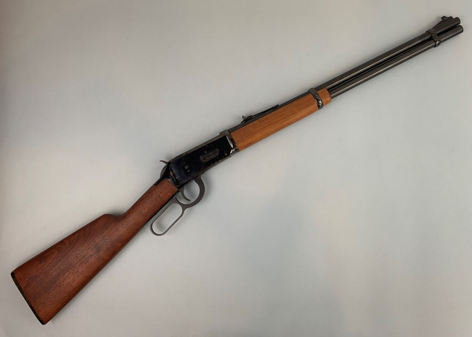 Carabine à levier de sous-garde WINCHESTER modèle 1894 calibre 30/30, arme dans son bronzage d’origine, quelques oxydations et rayures minimes sur la boite de culasse, mécanisme fonctionnel