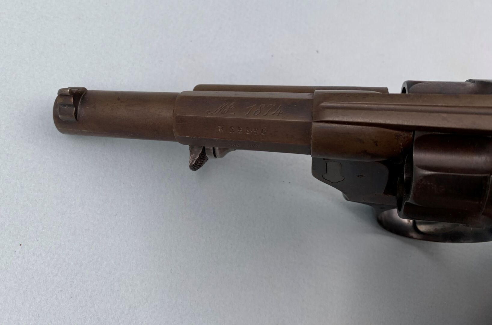 Révolver règlementaire Français d’Officier modèle 1874, série 1879, bronzage légèrement oxydé, pièces annexes blanches, mécanisme fonctionnel, m’arme n’a pas subi de repolissage, tous les poinçons, même les plus discrets sont parfaitement visibles, les angles sont bien vifs