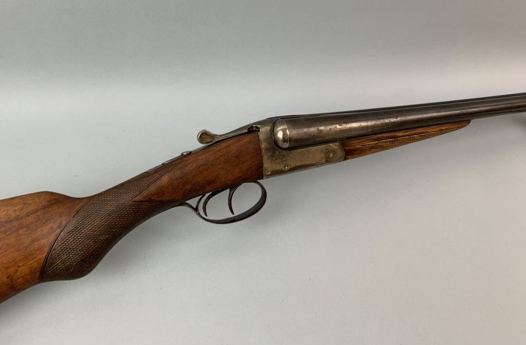 Fusil juxtaposé artisanal Stéphanois L’EPERVIER en calibre 12/65 à extracteurs, canons Fanget de 700 mm de long, mécanisme système Anson & Delay, bascule avec reste de jaspage, crosse demi-pistolet de 360 mm de long, mécanisme fonctionnel mais légèrement gommé.