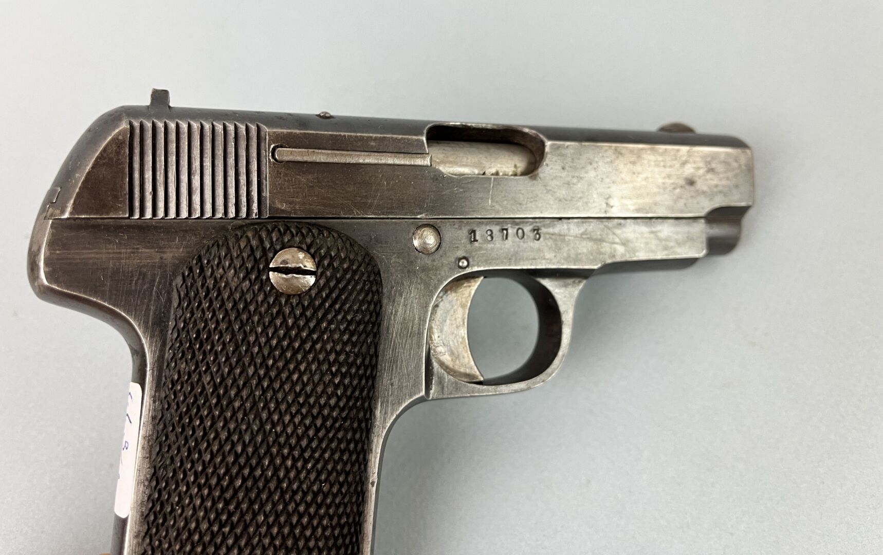 171 RÉSULTAT: 120 € ESTIMATION: 100 / 200 € Pistolet semi-automatique MARTIAN Cal 7 65 Fabriqué par MARTIN A BASCARAN EIBAR N° 18703 Dans son étui de ceinture en cuir fauve avec 3 chargeurs, Arme de catégorie B RGA : BF969