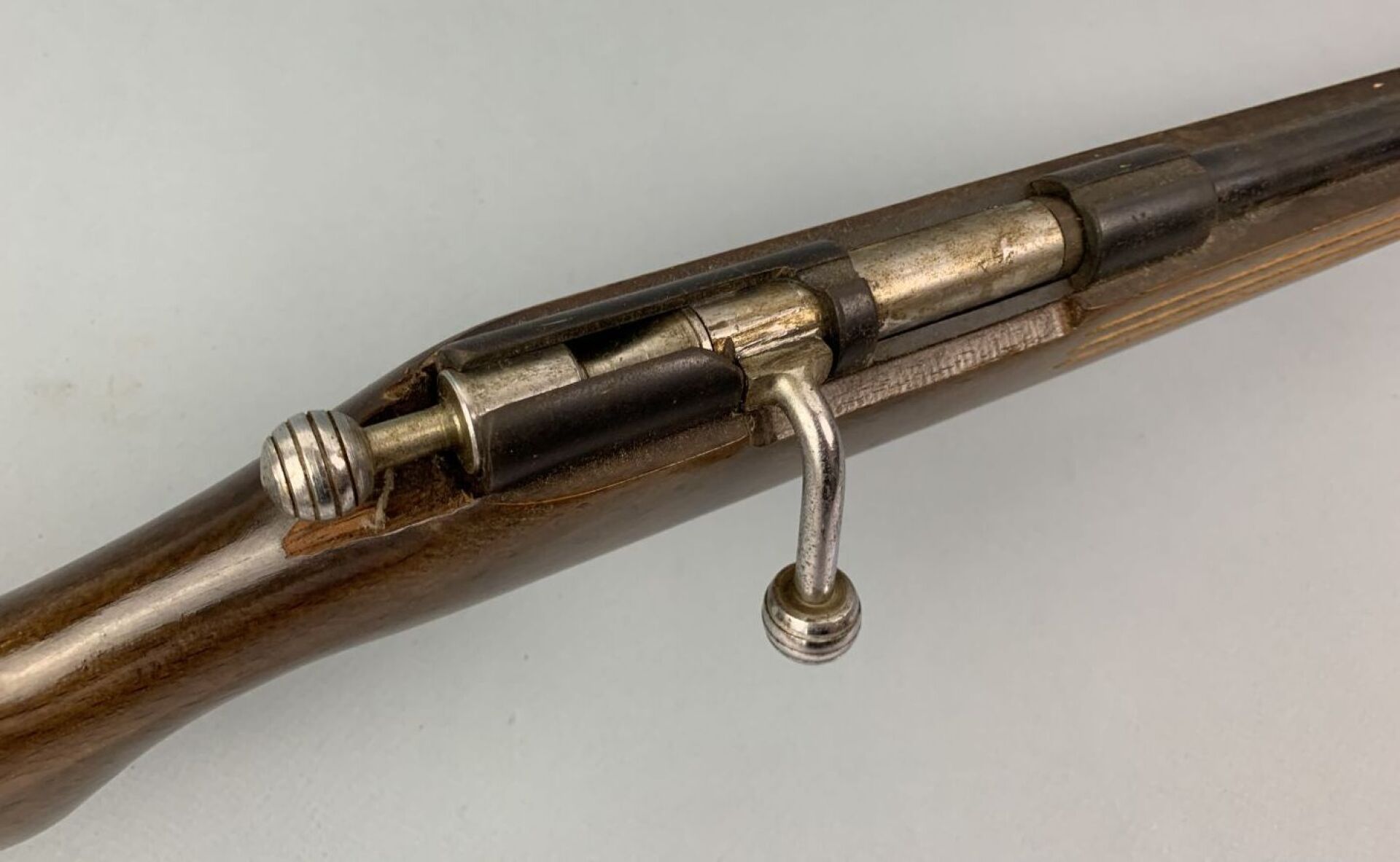 186 RÉSULTAT: 40 € ESTIMATION: 50 / 80 € Carabine de jardin MANU-ARM, calibre 12 mm, mécanisme fonctionnel Arme n°24074 Arme de Catégorie C RGA : AI697