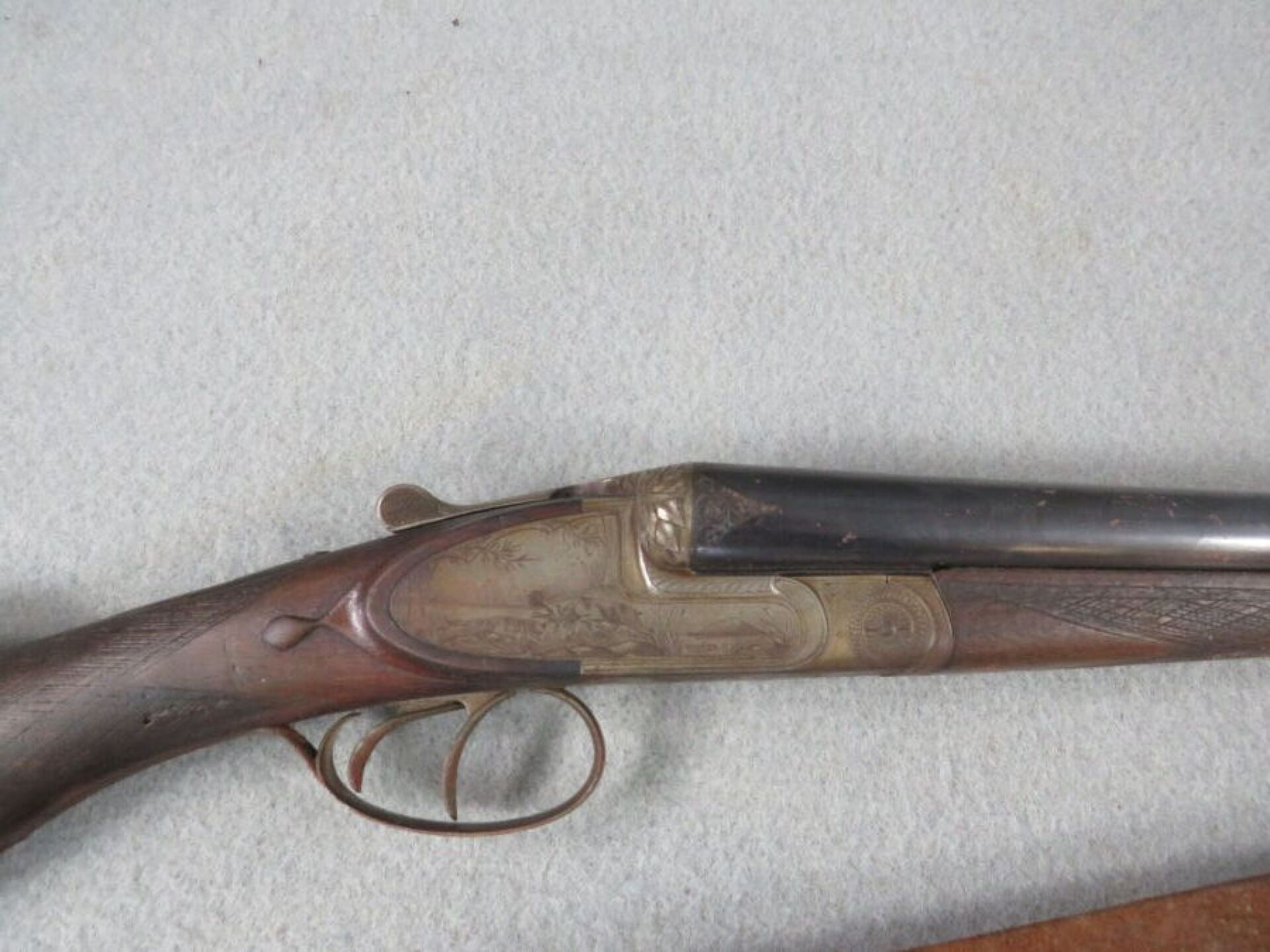 Fusil juxtaposé Stéphanois à contre platine en calibre 16/65 fermeture hélice, canons de 680 mm crosse demi-pistolet quadrillage écossais de 380 mm de long. Pas de jeu, mécanisme fonctionnel.