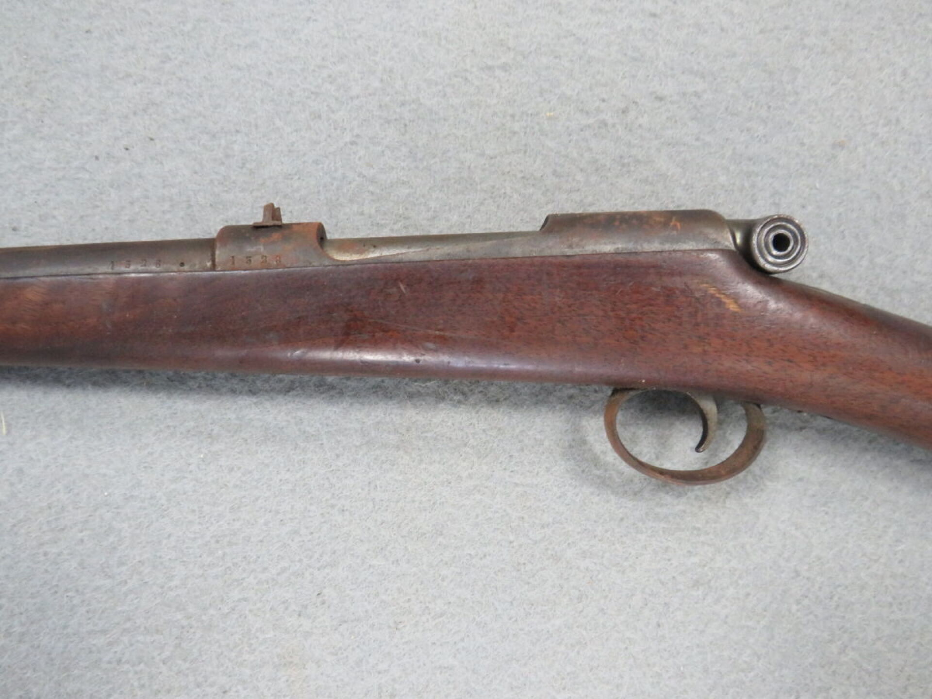 Carabine de jardin calibre 9 mm Flobert à culasse rectiligne, ouverture par deux oreilles ascensionnelles vers le haut pour le déverrouillage. Mécanisme fonctionnel,
